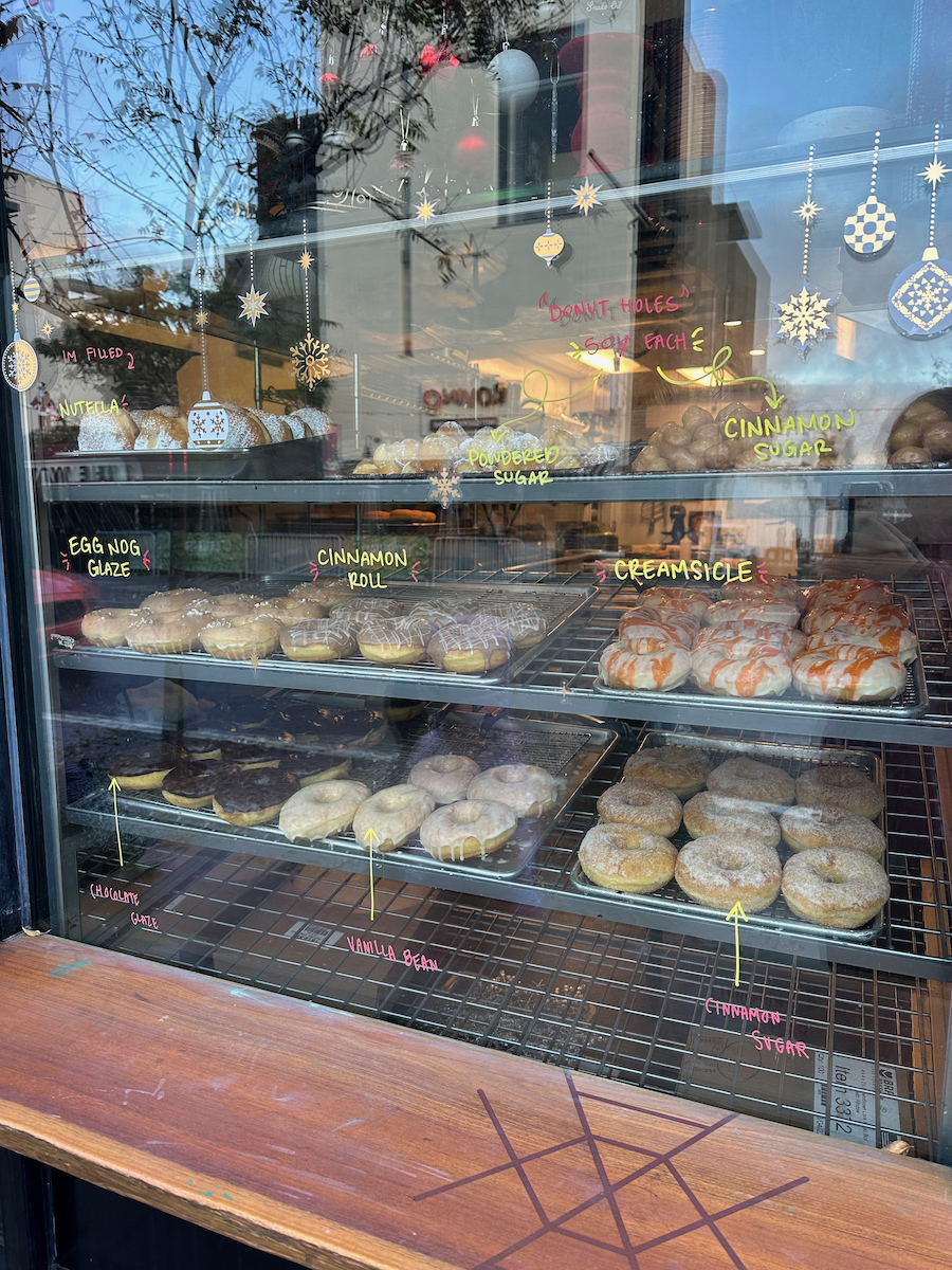 We walked by this donut shop a few times over the past few days, so wanted to give it a try. Well, they had donuts, but their sitting area was closed due to rain last night and they didn’t have cold brew available.