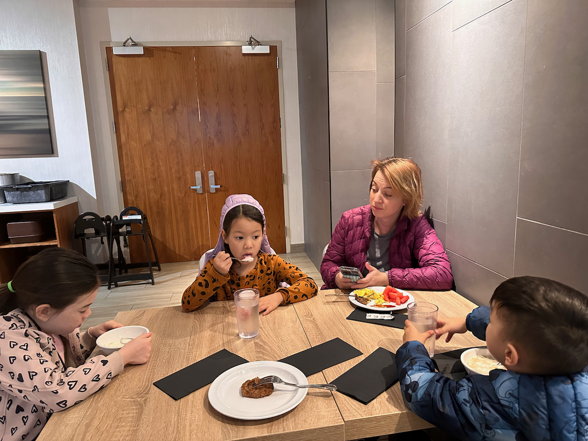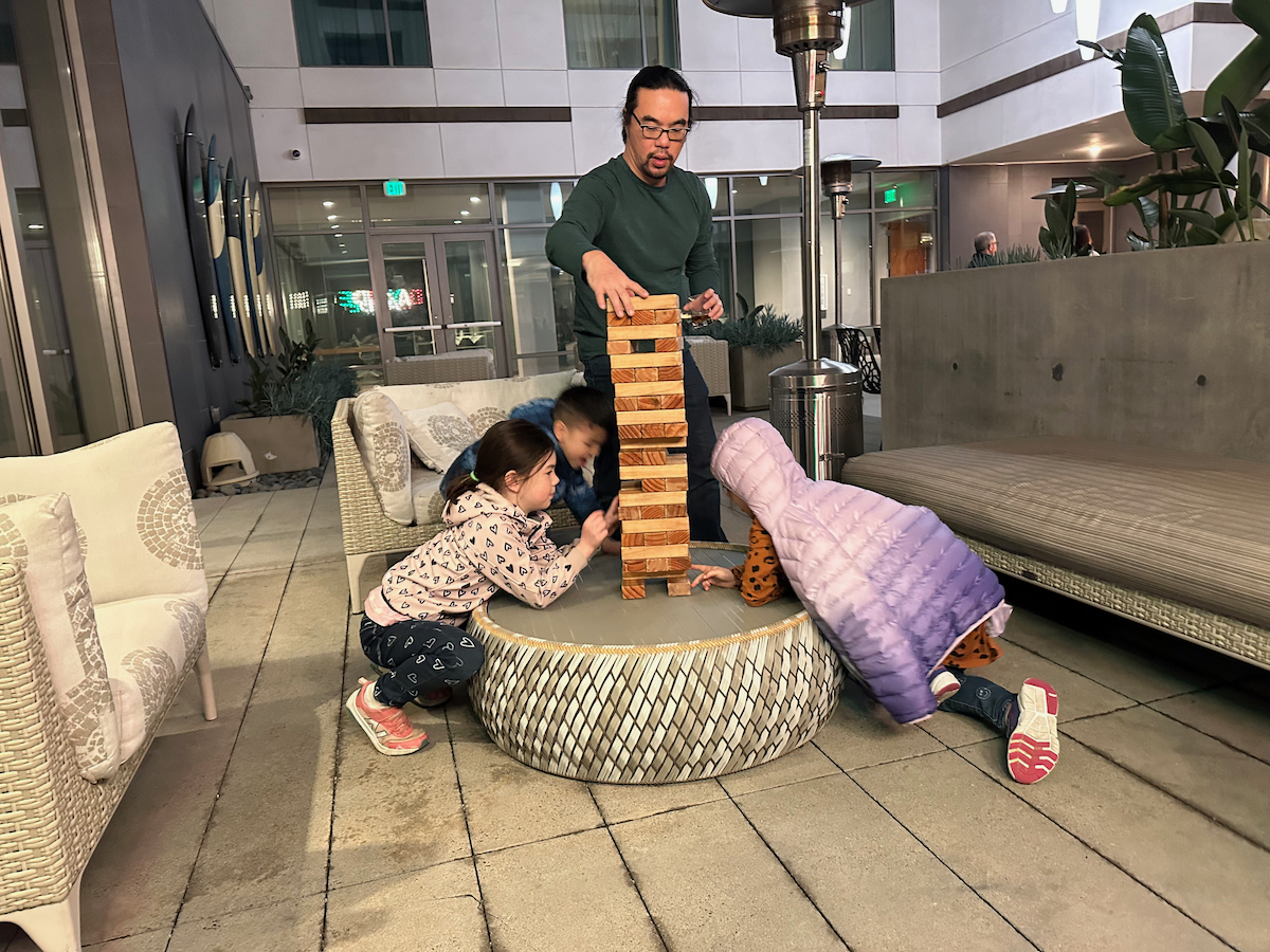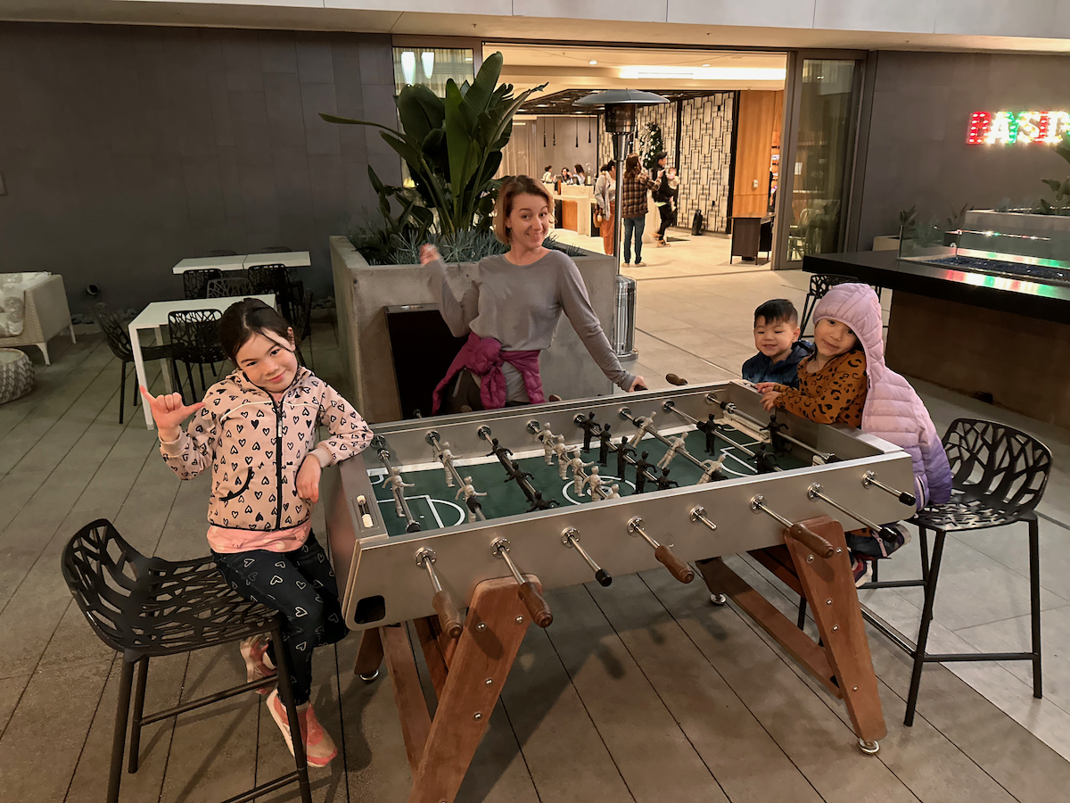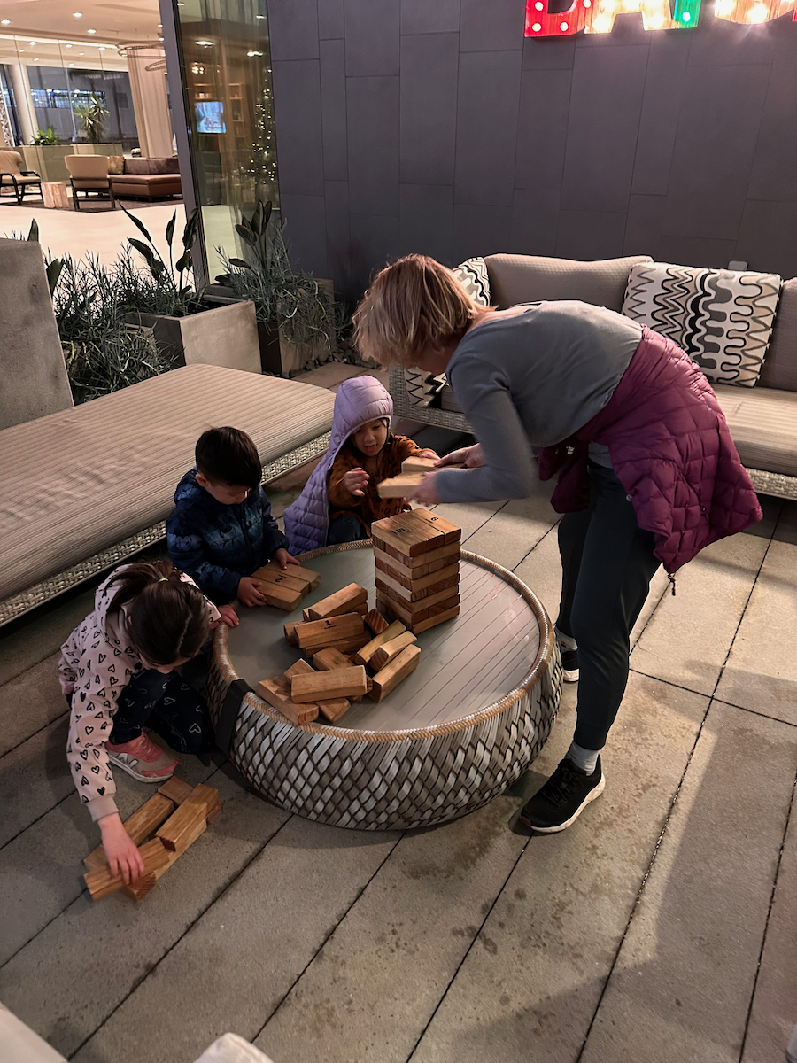 A couple hours of rest in the hotel room with TV on for everyone to calm down, then we are out again. We couldn’t make the playground earlier today, and kids have been asking for it, so we are heading to playground this afternoon before we head out to dinner.