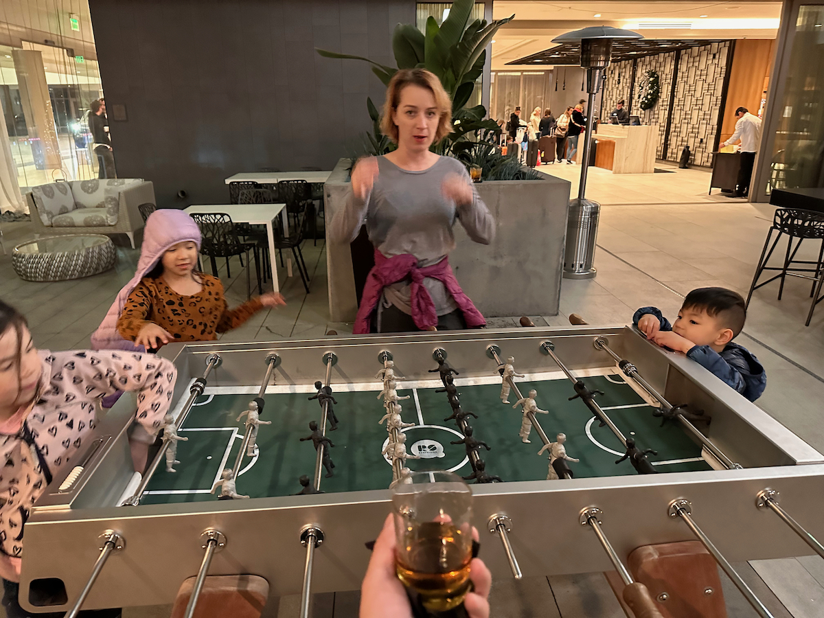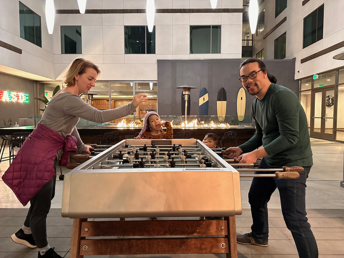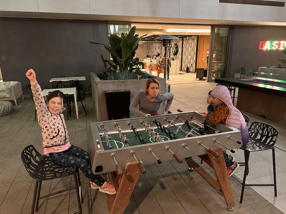 After dinner, the kids wanted to watch the ultimate foosball match, baba vs. mama.