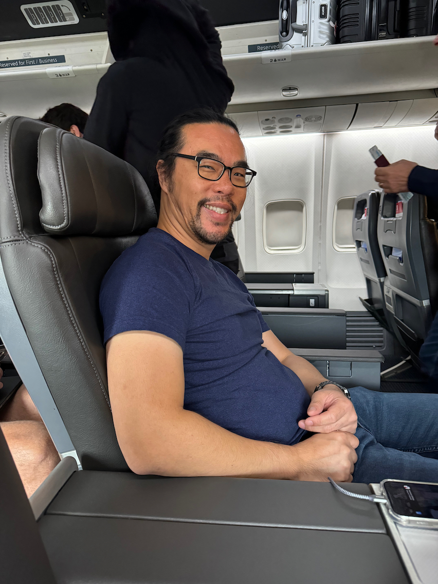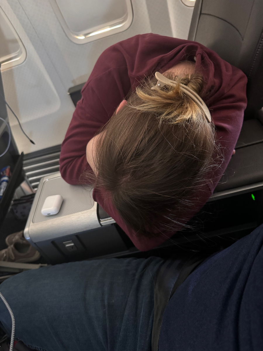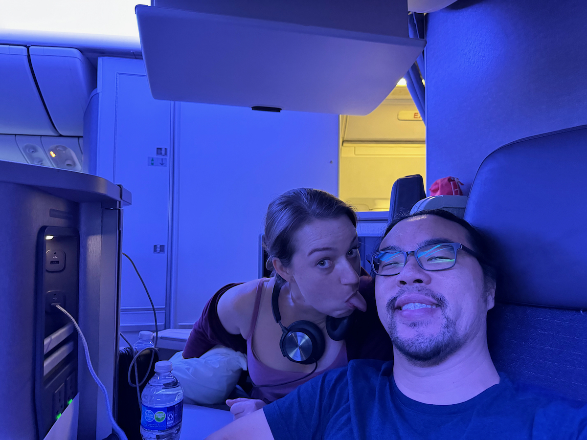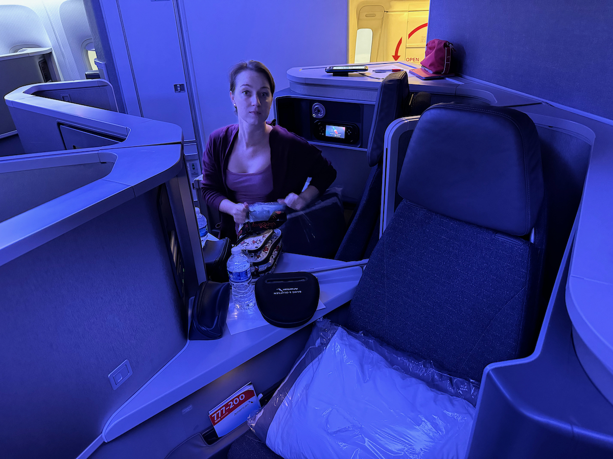 First time for me to fly in seats that can lay flat. Not only that, our seats face backwards. Unsure how I feel about that as I know I typically get motion sickness easier on trains when I’m facing backwards. Hopefully that’s not the case here.