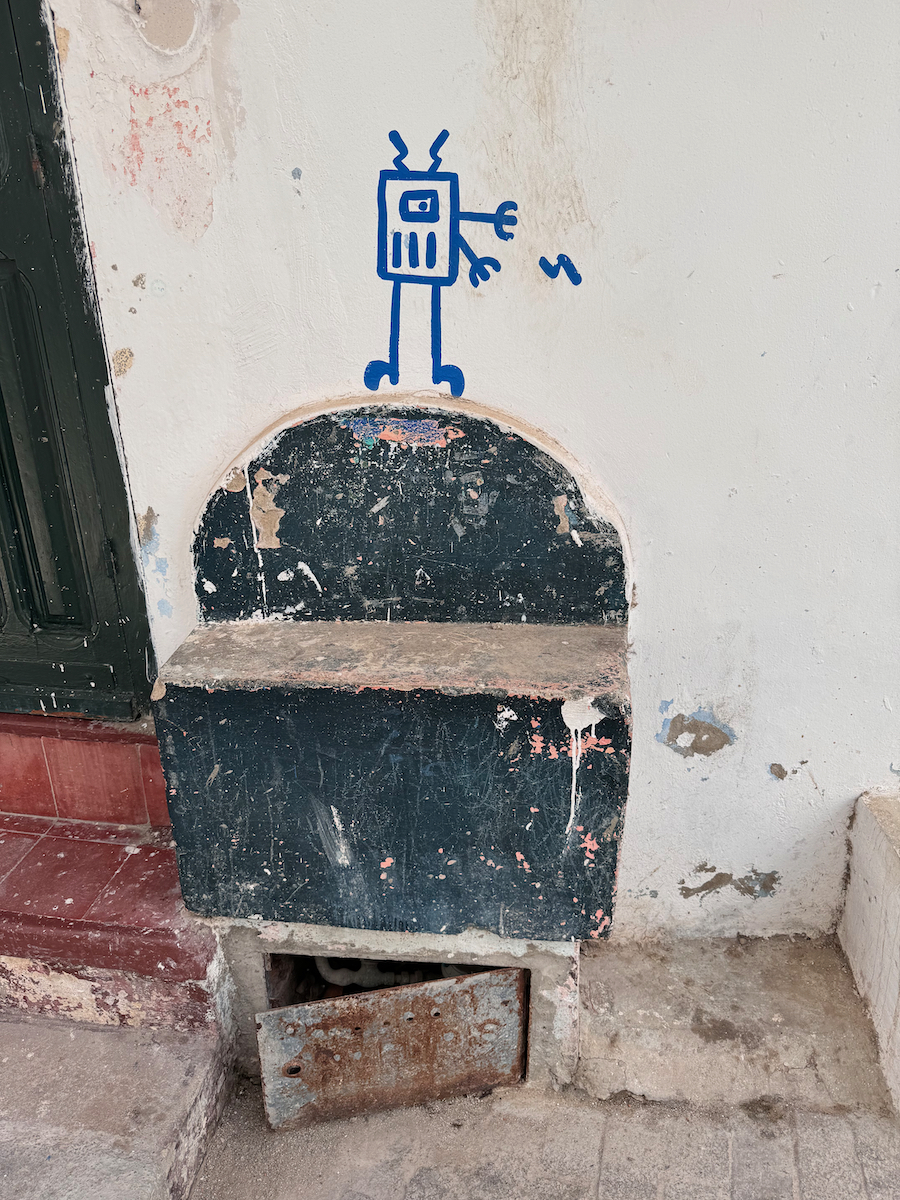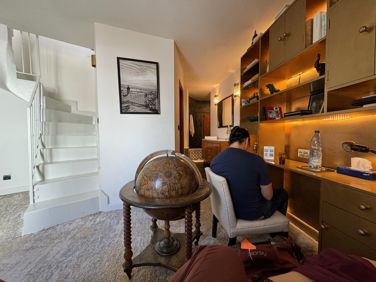 Here’s our room, I had no idea what to expect at first, but it’s a cool little spot. This is what $160 a night gets you in a pretty awesome location inside the old city of Tangier. This guesthouse is a combination of several houses and you get to your room from what seems like a little maze of different levels and tiny stairs.