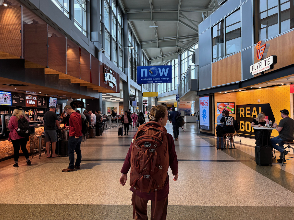 Had a late morning flight at 11am, which means we had time to drop our kids off at school before calling an Uber to take us to the airport.