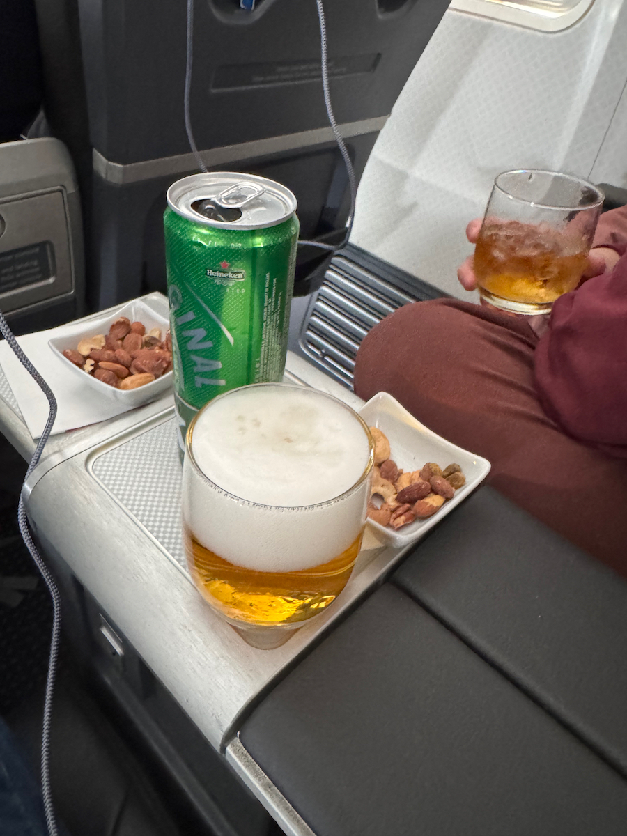 Free alcohol is a plus too. I love eating nuts, but my daughter PL has nut allergies, and it makes me cringe a little bit that they just serve these openly on planes.