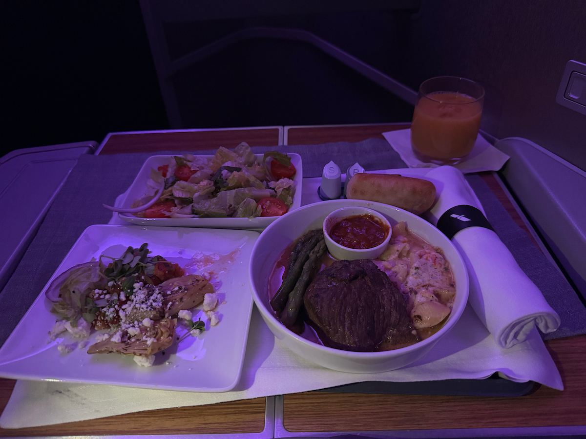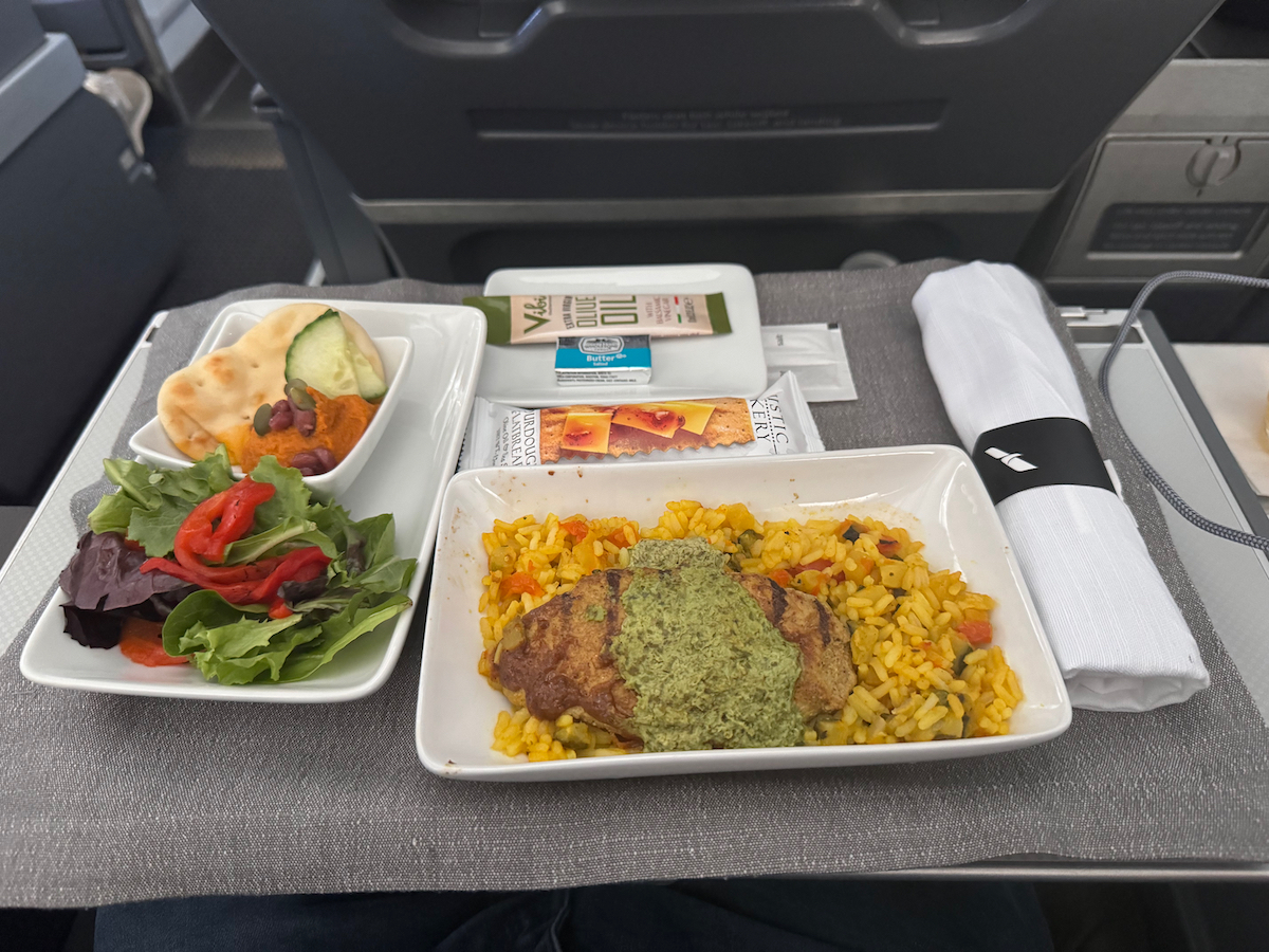 My favorite part of flying, food. Unfortunately, I did get some motion sickness. It was a pretty turbulent flight and while watching TV I started getting motion sickness to the point I had to turn the TV off. Food was pretty good though.