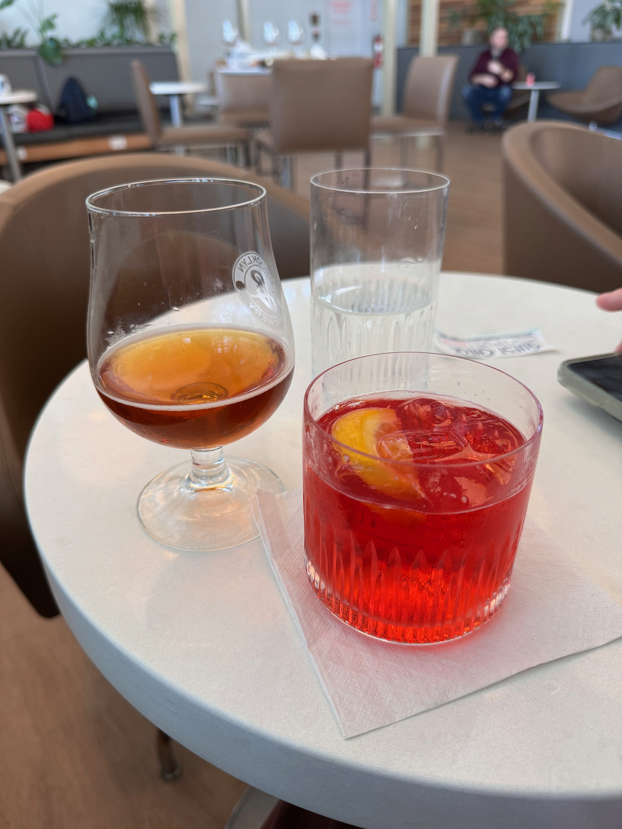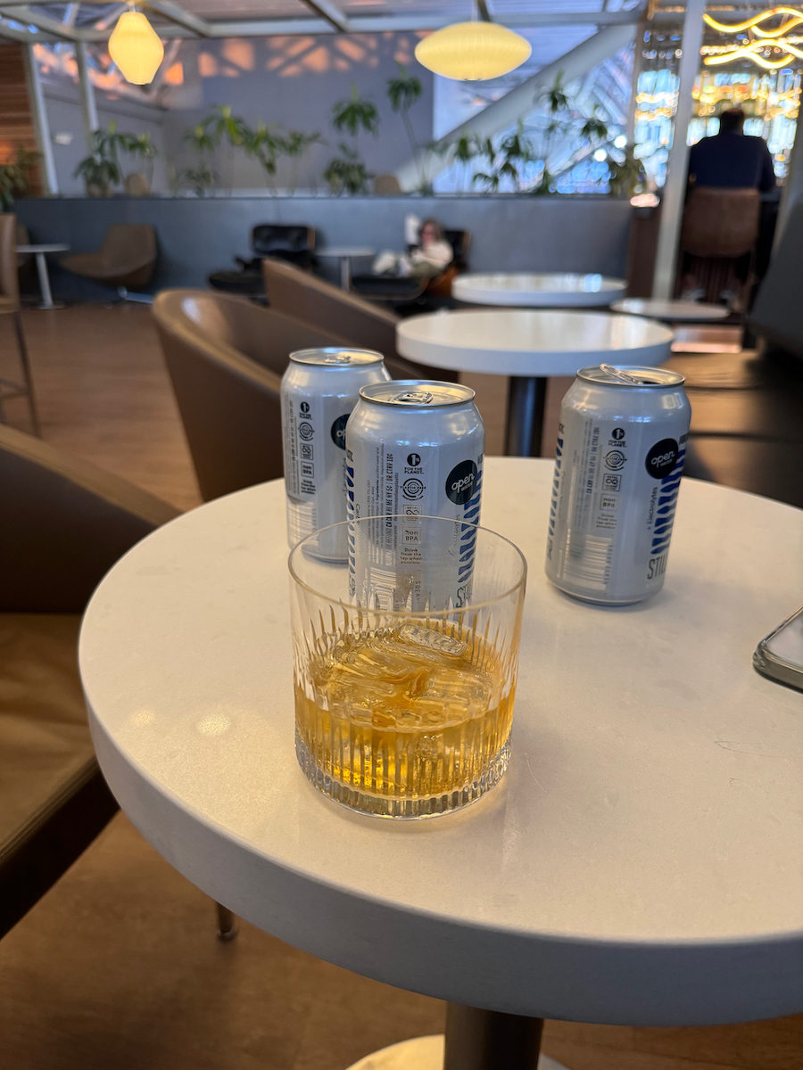 Two extra hours of waiting means more drinks I guess…the cans are cans of sparkling water.
