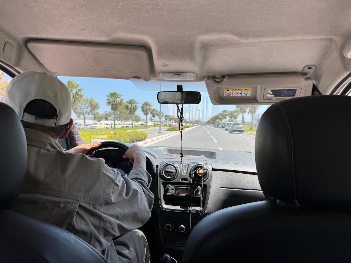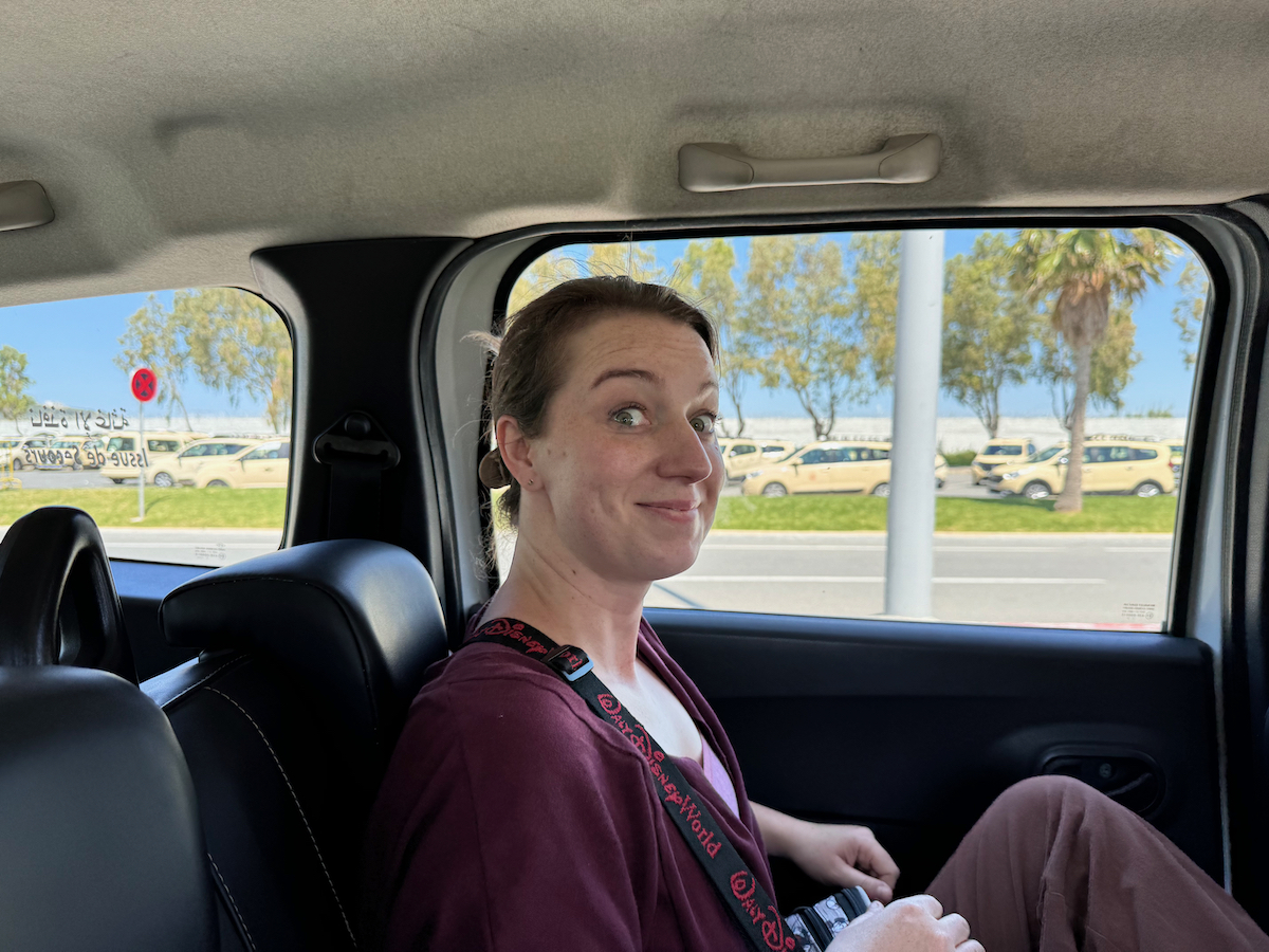 Excited. Of course, none of the seatbelts are working in the taxi.