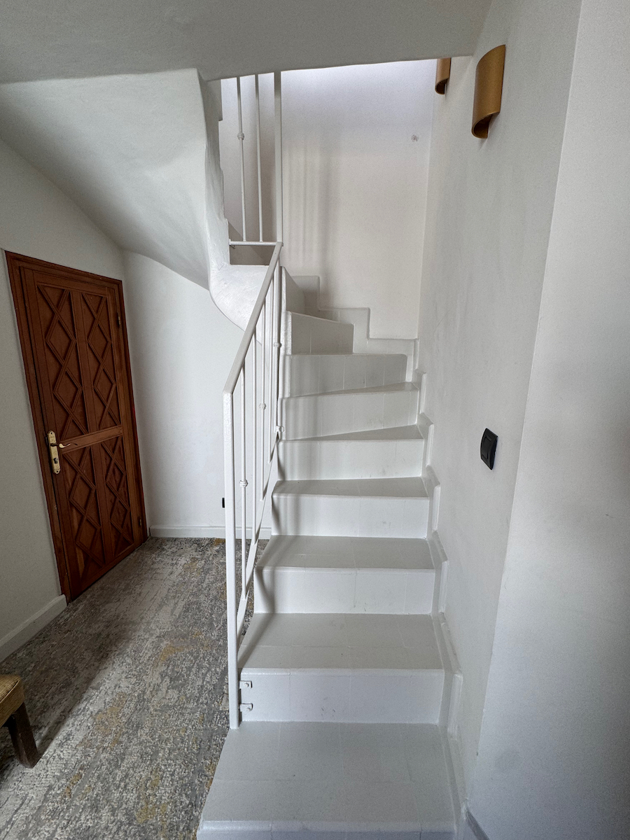 In our room, we’ve got our own little tiny staircase that leads up to the bedroom.