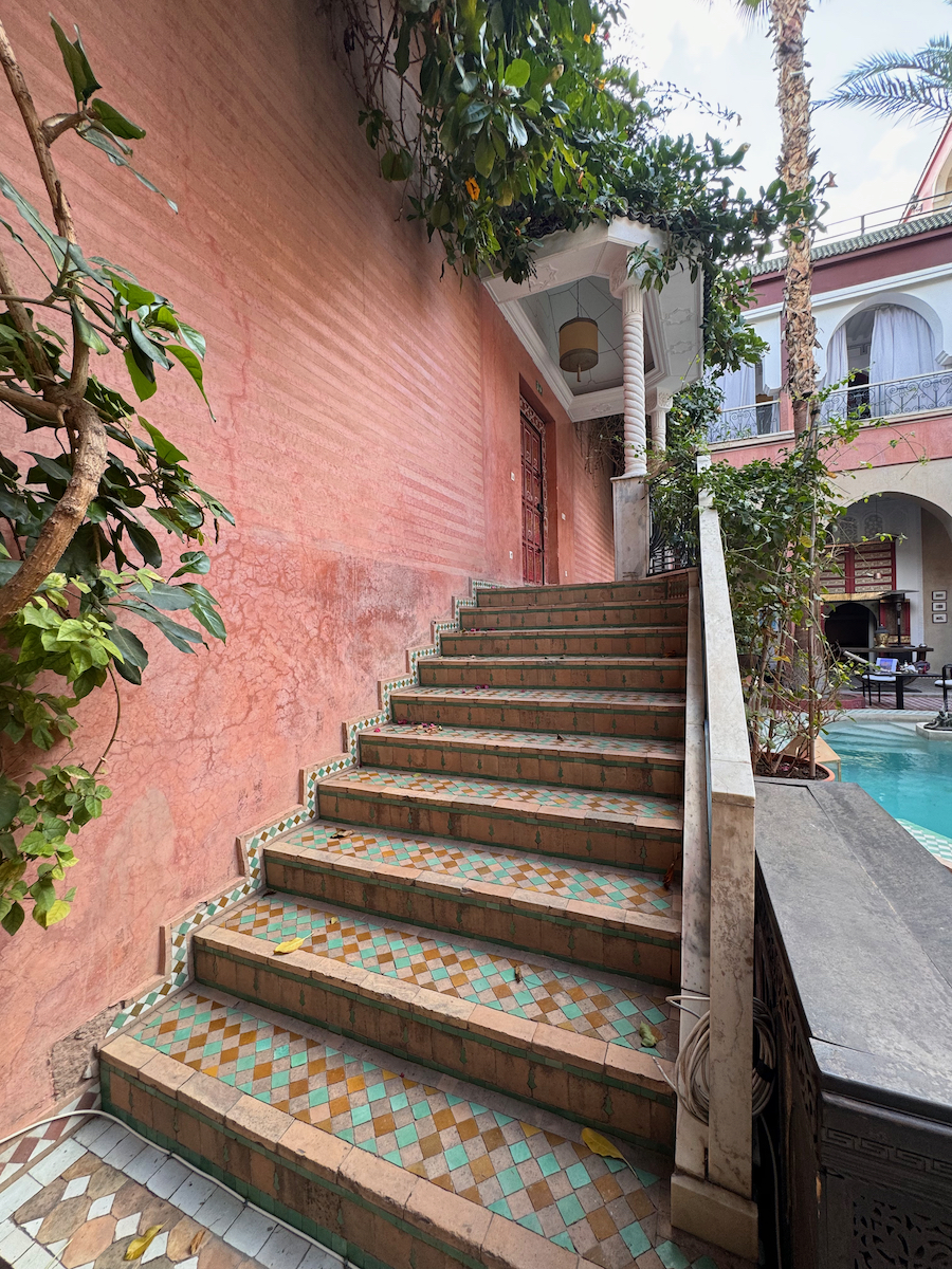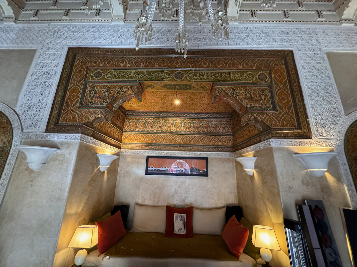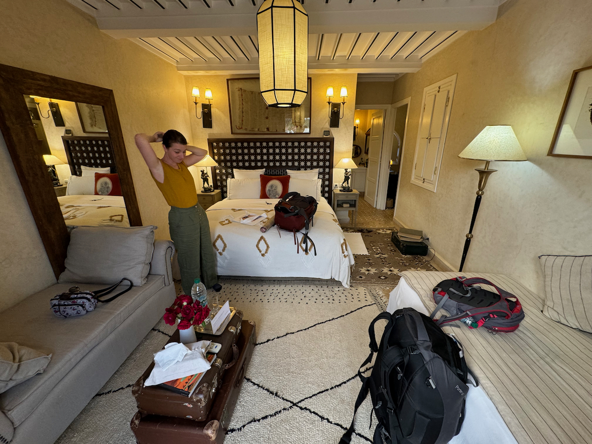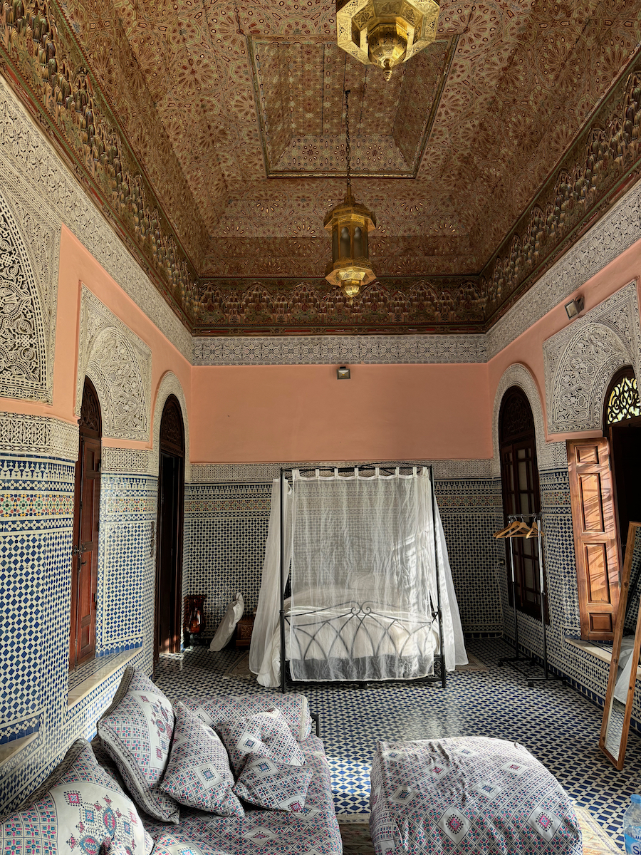 This is what roughly $400 a night gets you in Marrakesh. It’s by far our priciest room, and it makes sense because we also found out that Marrakesh is the most expensive and most touristy city that we’ve visited on this Moroccan trip. With the high price we also bought privacy, with a room on our own floor far away from the other guests. It’s nice, after all, despite how beautiful our riad was in Fes, you could hear everything.