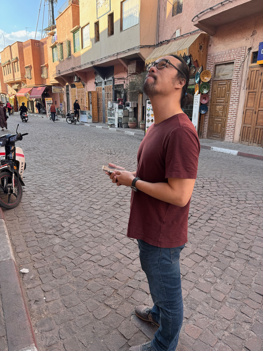 Our taxi driver didn’t know how to get to our riad, so he asked to use my phone and my google maps.