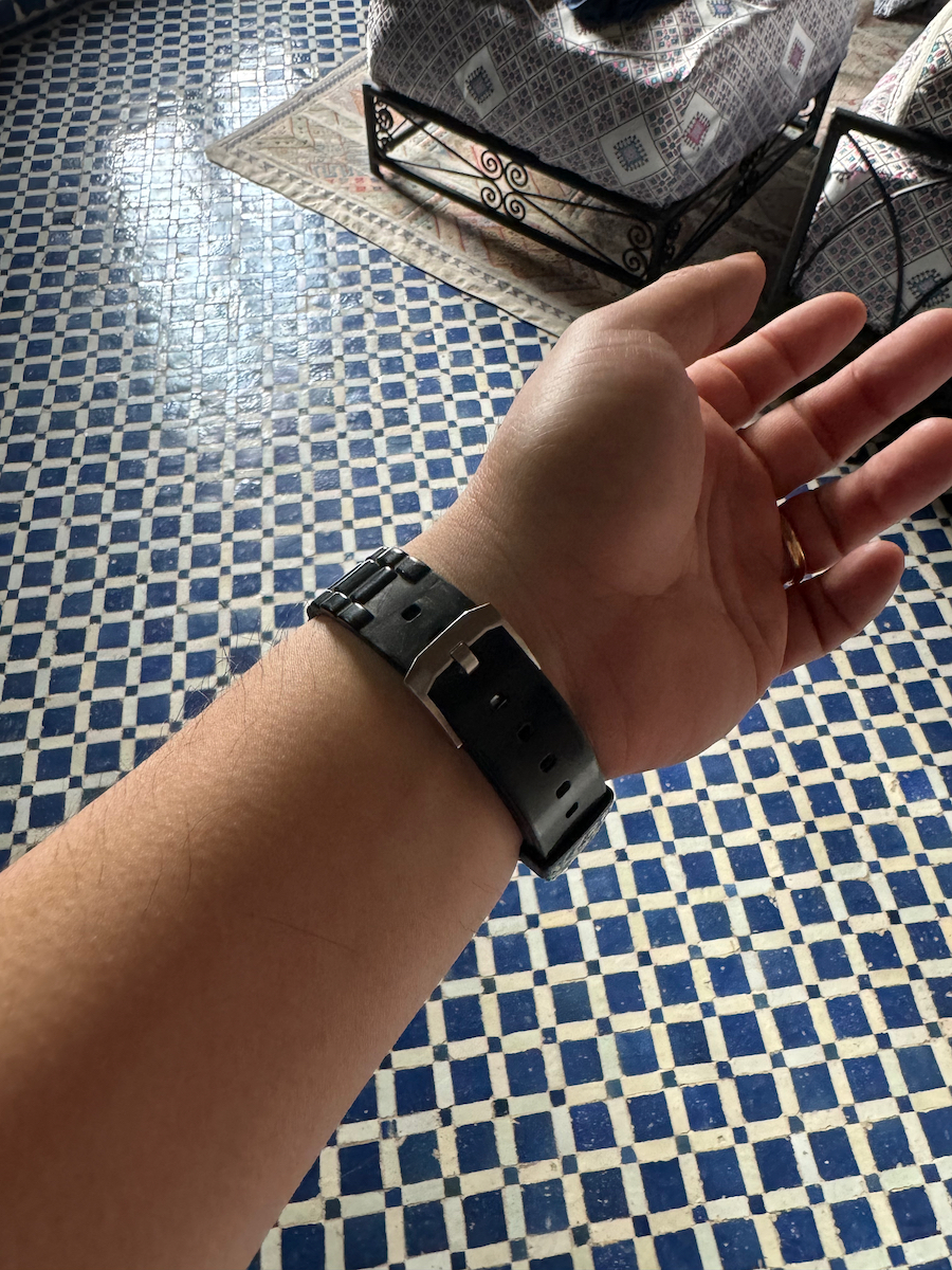 It’s been almost 10 years since I’ve worn a watch for any extended period of time. I used to wear a watch daily, but stopped wearing one when I had kids. The watch would always get in the way when I was constantly holding a baby. But last trip abroad, I got tired of taking my phone out of my pocket constantly to check for time, so decided to bring the watch back. This is the same watch that I wore when I was traveling through India, and it got partially dyed pink during Holi. The pink has gone away, the battery had to be replaced a couple of times since then, but it’s still my travel watch of choice. It also brought back the memory of how I used to start the trip at one strap notch, and as the trip went on, I’d lose weight from all the walking and that eventually I’d size down to a tighter fit. I have since sized down one notch since the beginning of this trip.