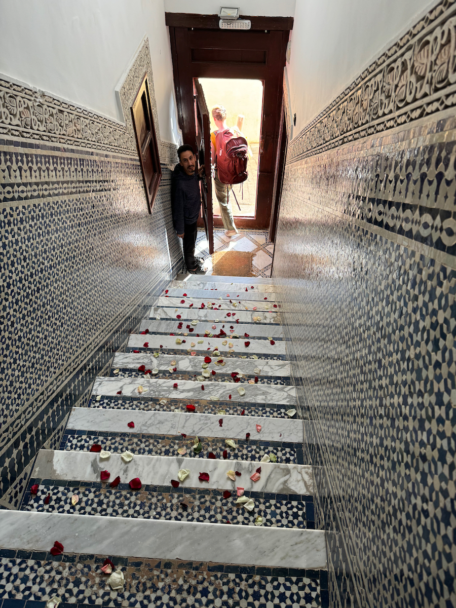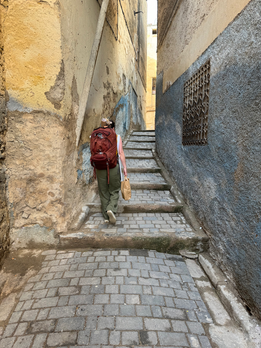 Of course, can’t leave Fes without first walking up and down stairs with our heavy packs.