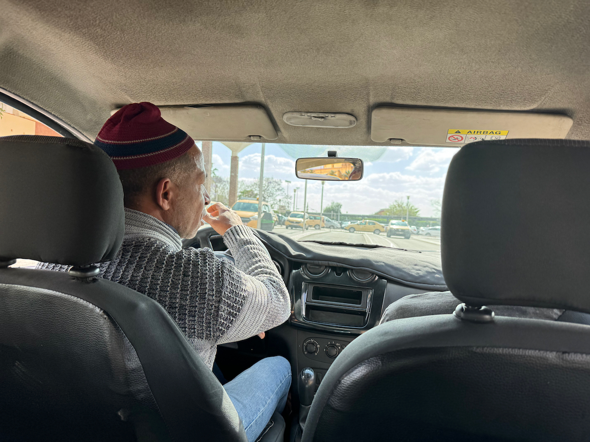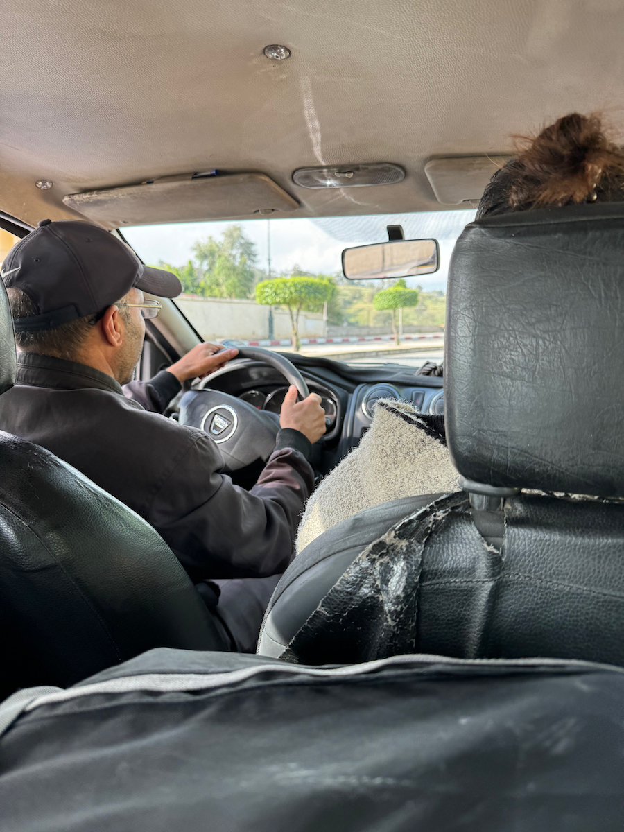 Bab Ziat (the name of this old city gate) out of the old city, then we hail a taxi.