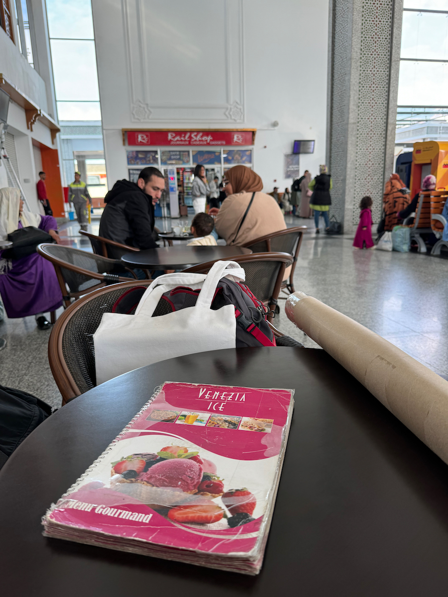 This will be our longest train ride on this trip. It’ll be almost 7 hours long all the way from Fes to Marrakesh. When I had booked our tickets online back in Austin, we were aligned seats from the ticket issuer seats that were not by the window, but by the hall way in the train. It’s not the worst seats, because we could be stuck in the two middle seats in the 6 person first class train compartment. We tried to change our seats yesterday, but it was a no go.