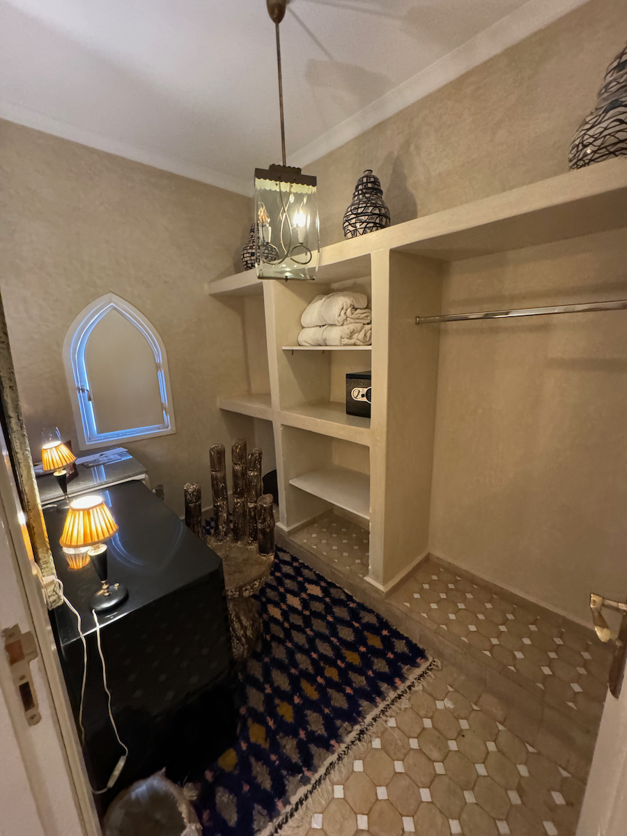 Even has its own office/closet room. We ended up not using this room at all though. This riad may be nice, but us being the farthest room away from the center, we had very poor wifi signal, so for any blogging work, I had to take the laptop down to one of the tables by the pool side in order to get wifi. A shame really, would have loved to blog up here or on the terrace.