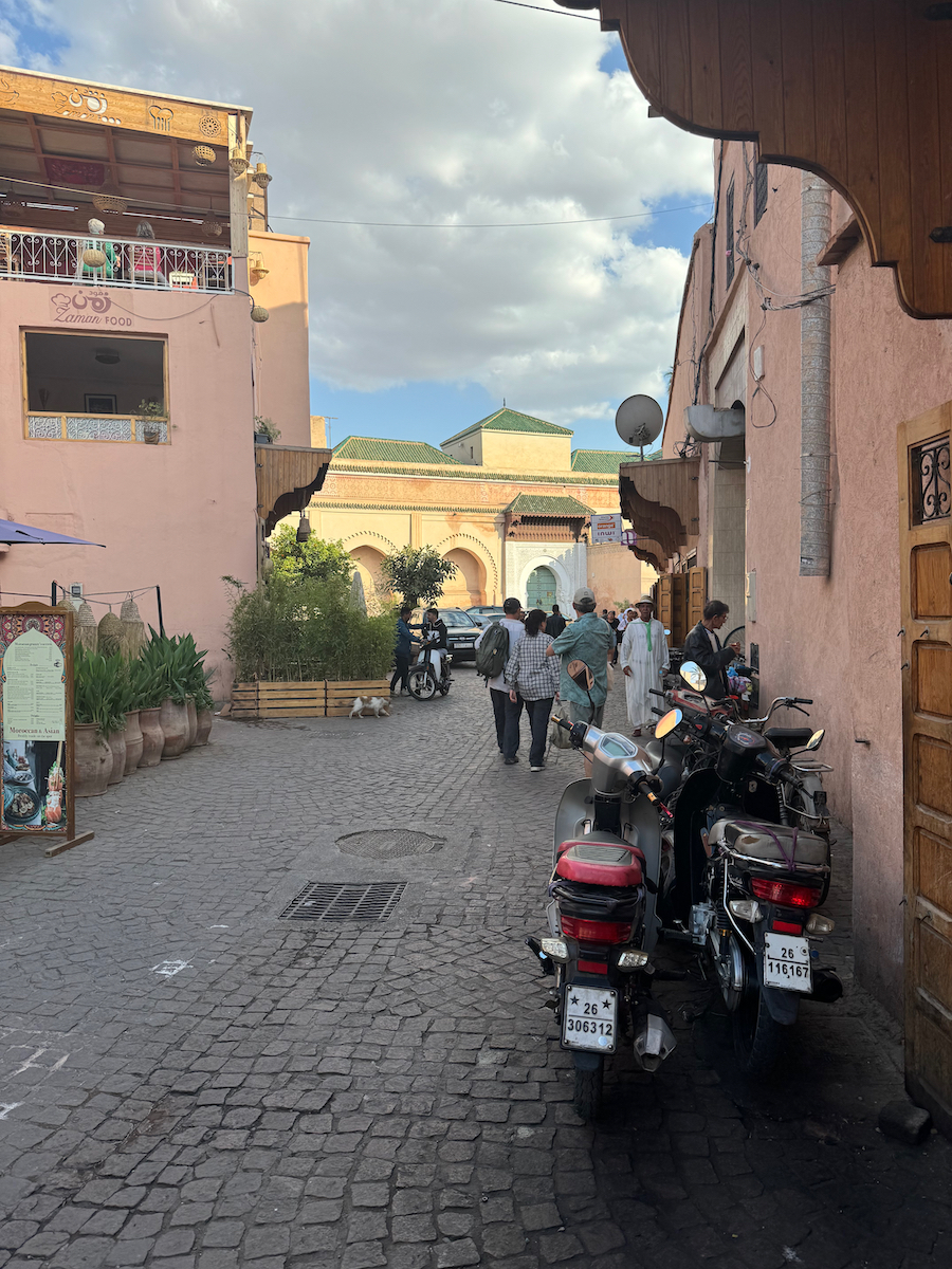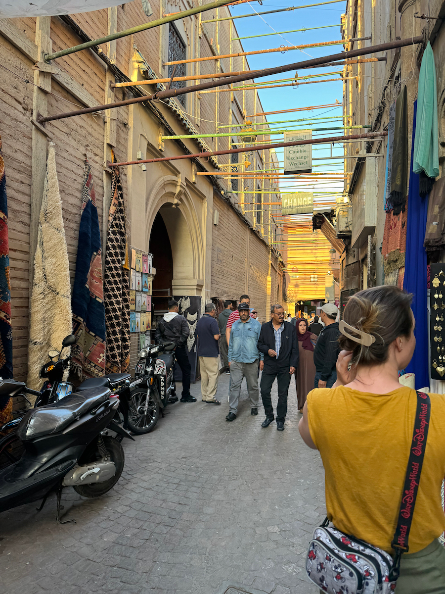 Reached the riad entrance and got my phone back. Marrakesh definitely has a very different feel than Tangier and Fes. It’s much more crowded with people and cars here.