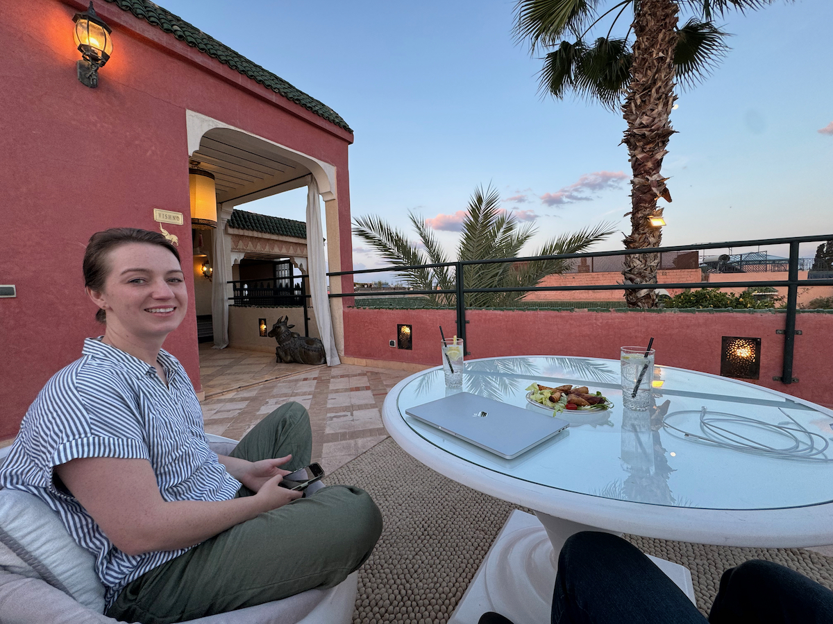 OK, this is nice. It’s not classically beautiful like our riad in Fes, but this is definitely nice is its own way.