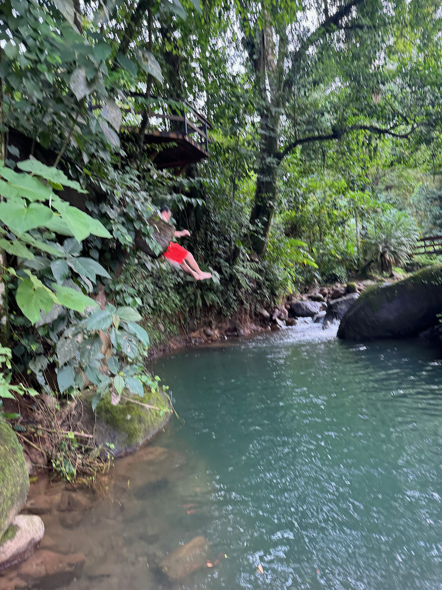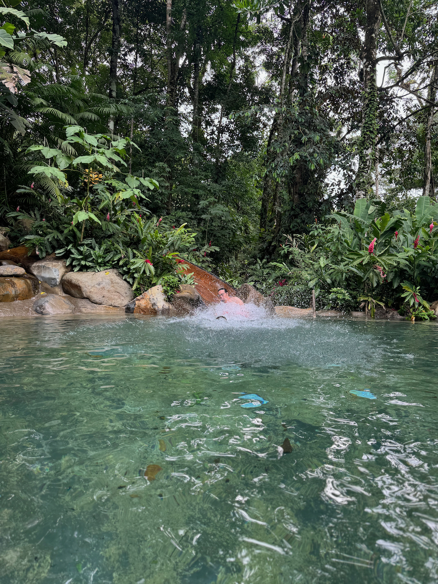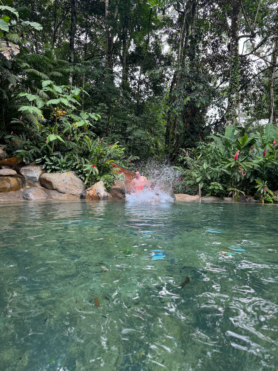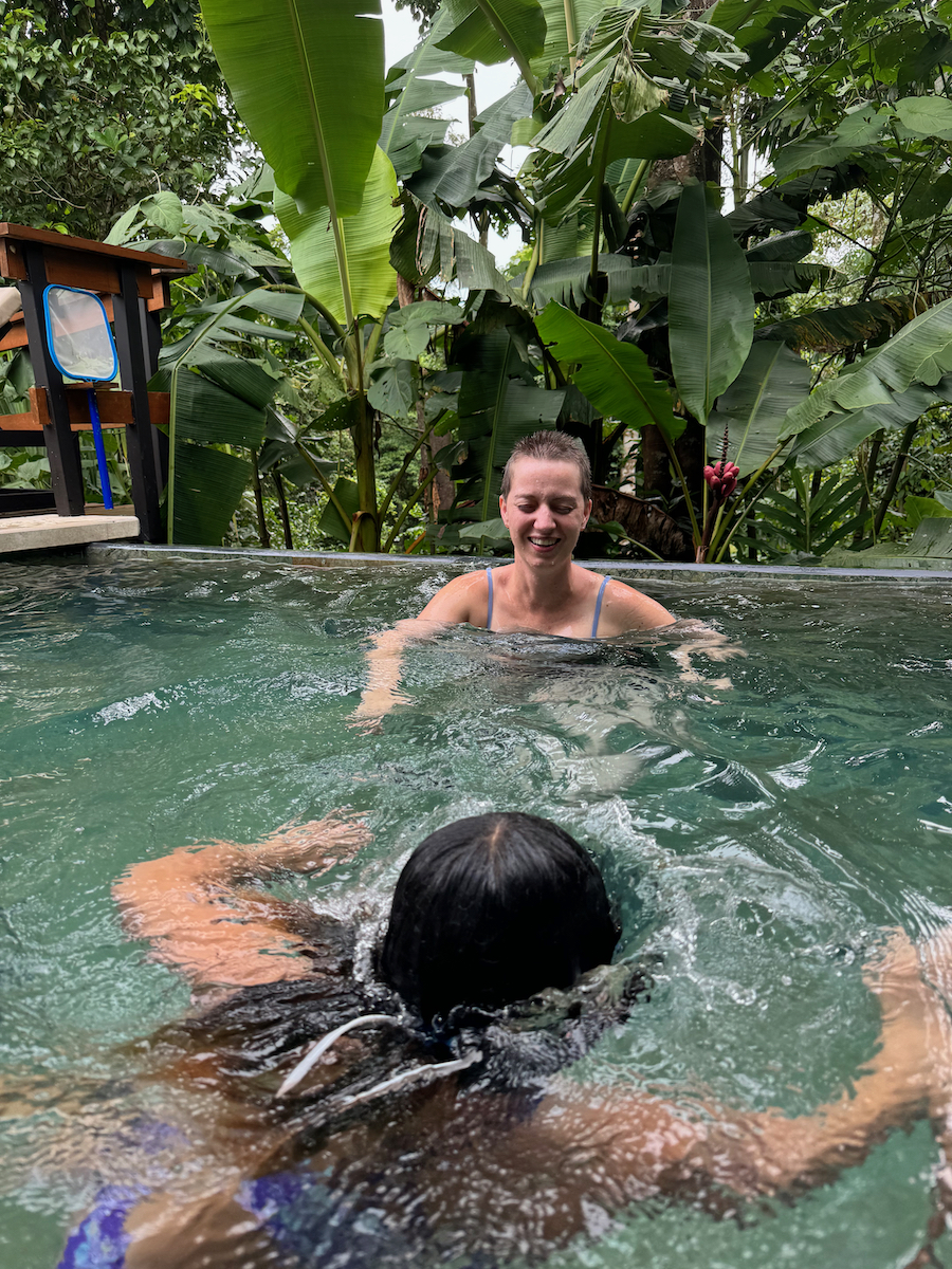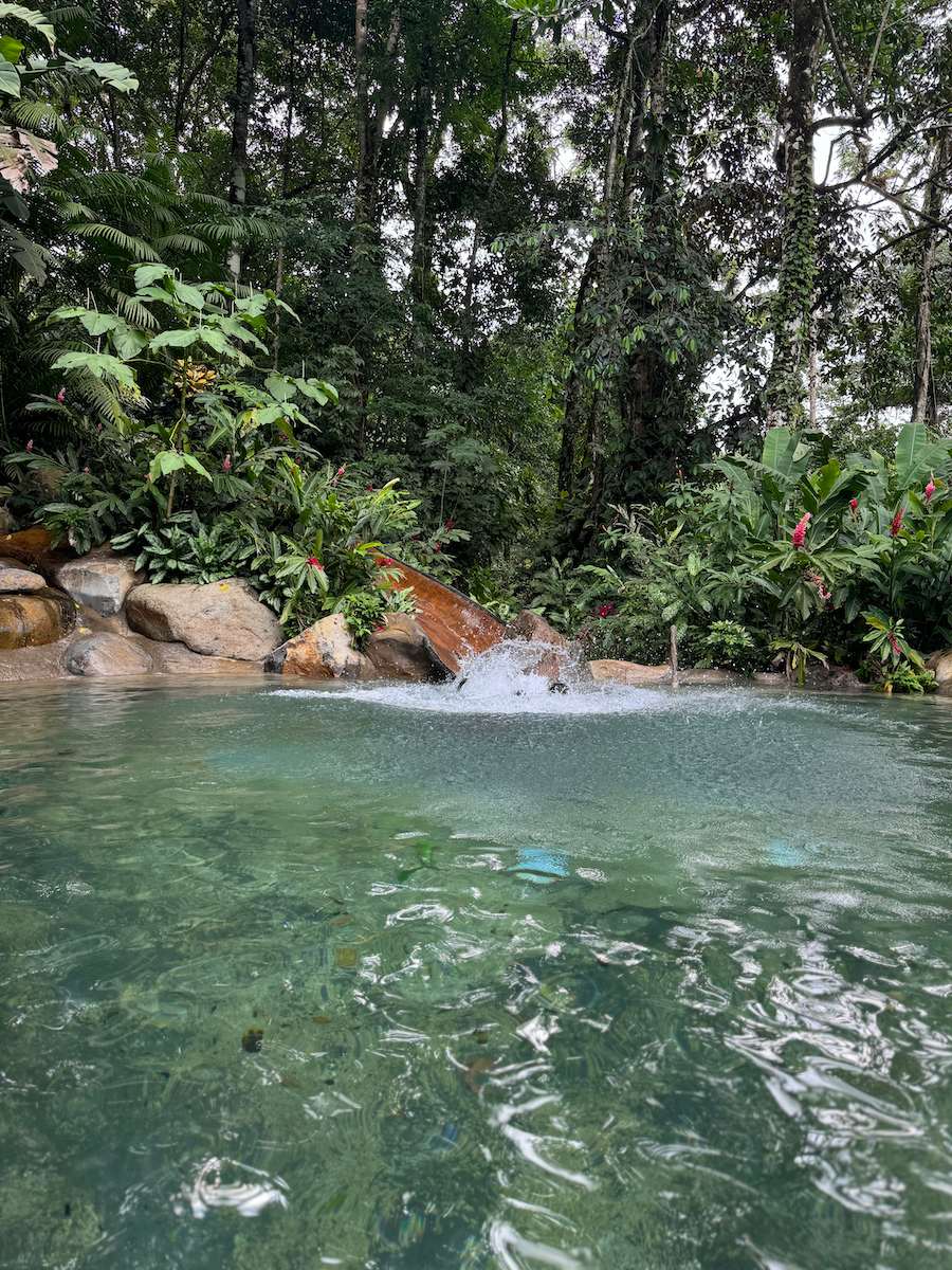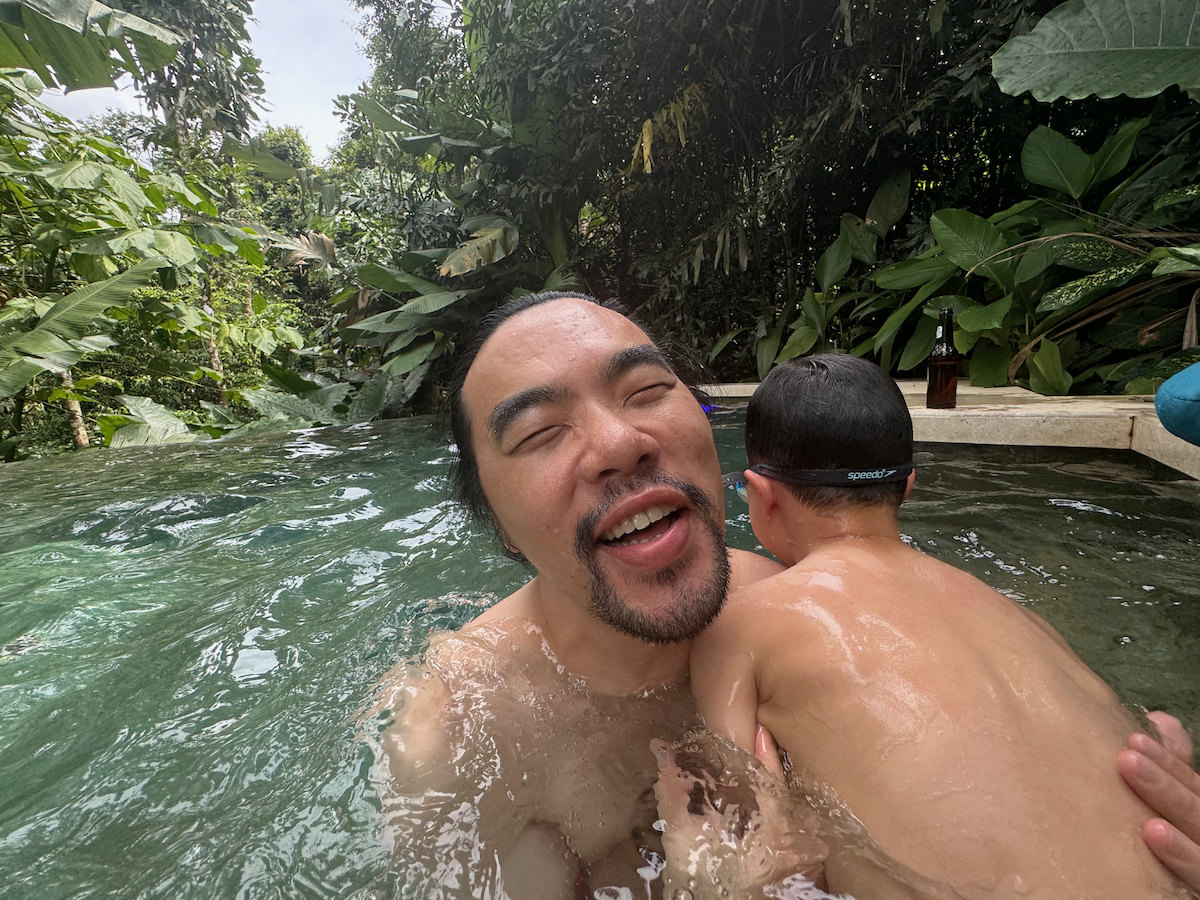 Then it started raining, like it does in rainforests. Magical. The rain hits the surface of the water and we see splashes of glow as it refracts the underwater pool light. It feels like we are inside the Avatar movie Pandora with the plants, rain, frogs sounds, bird sounds, insect sounds, etc. etc. It’s just a fantastic experience out here.