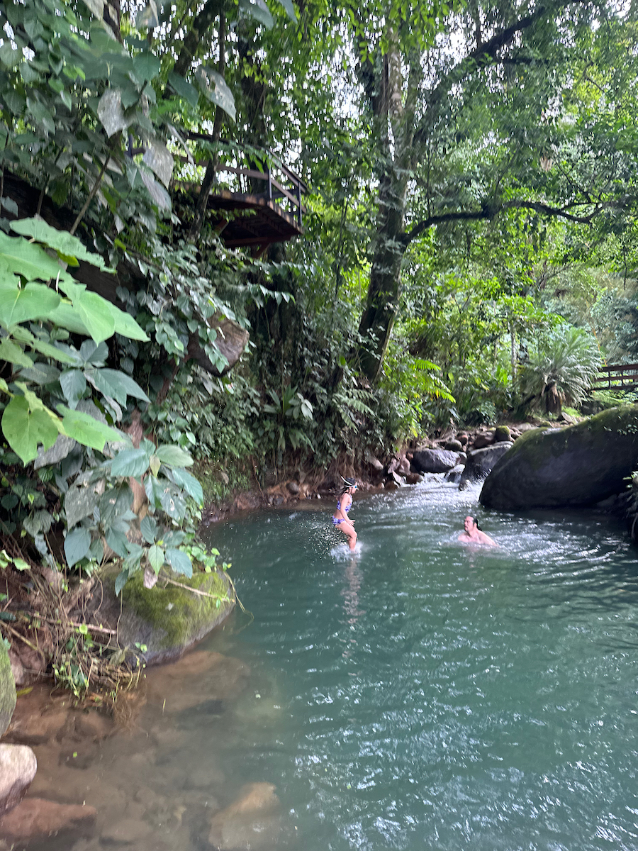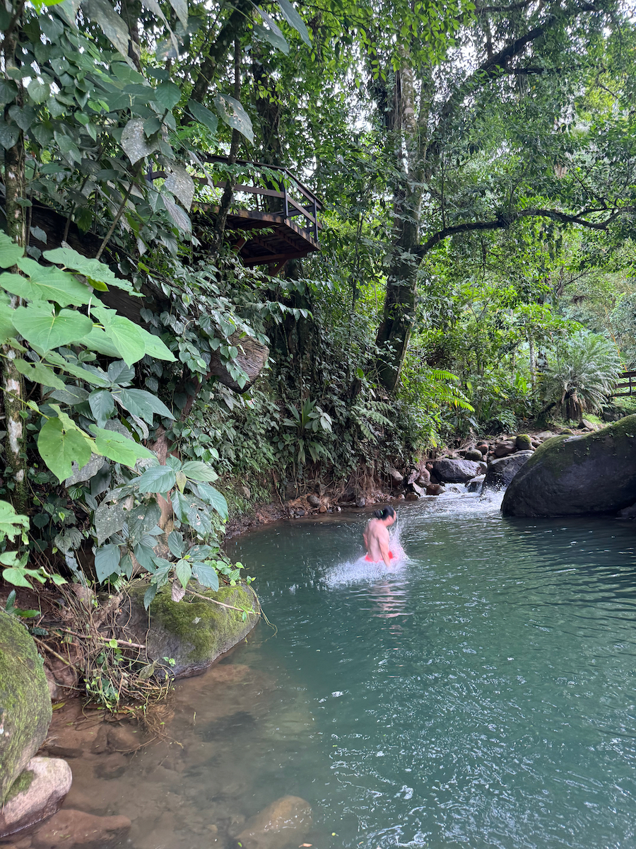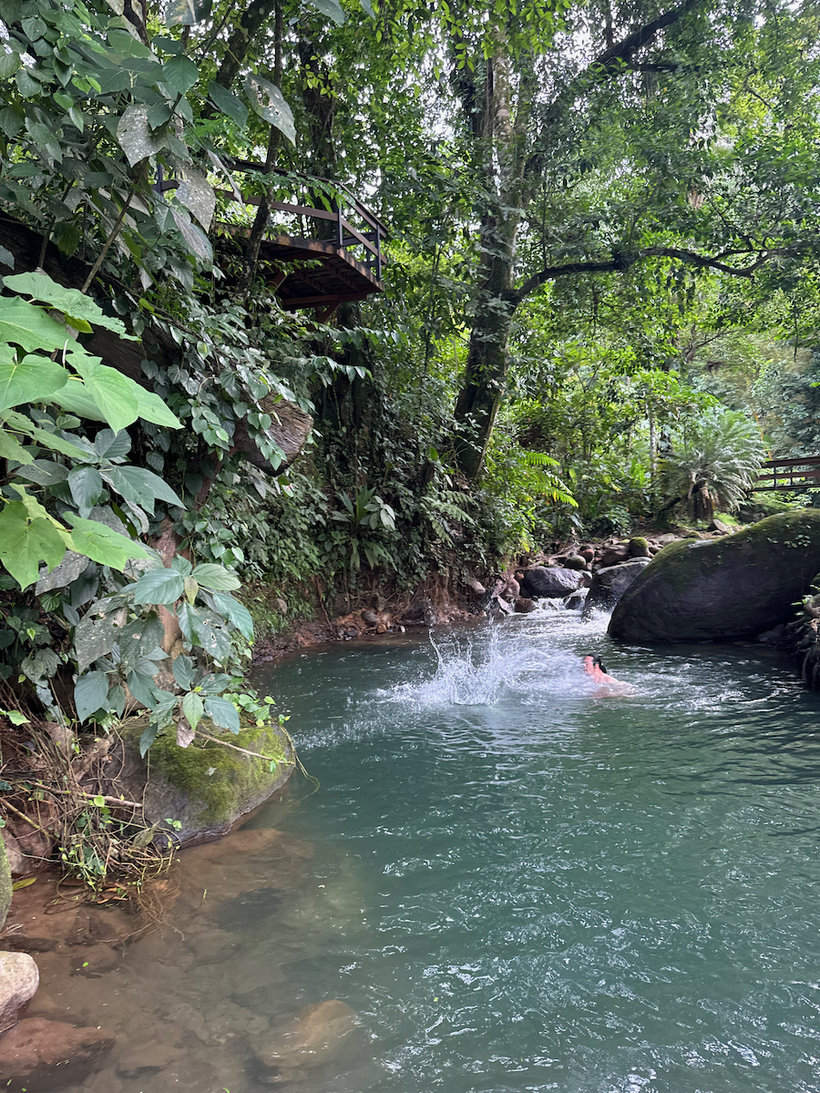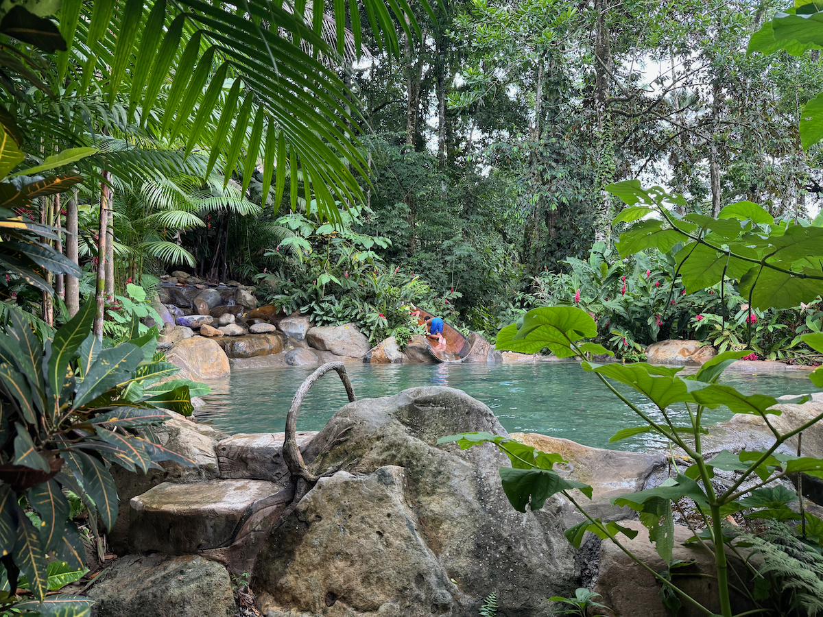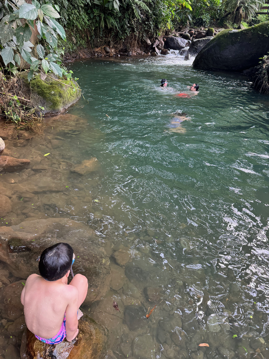 Then it started raining, like it does in rainforests. Magical. The rain hits the surface of the water and we see splashes of glow as it refracts the underwater pool light. It feels like we are inside the Avatar movie Pandora with the plants, rain, frogs sounds, bird sounds, insect sounds, etc. etc. It’s just a fantastic experience out here.