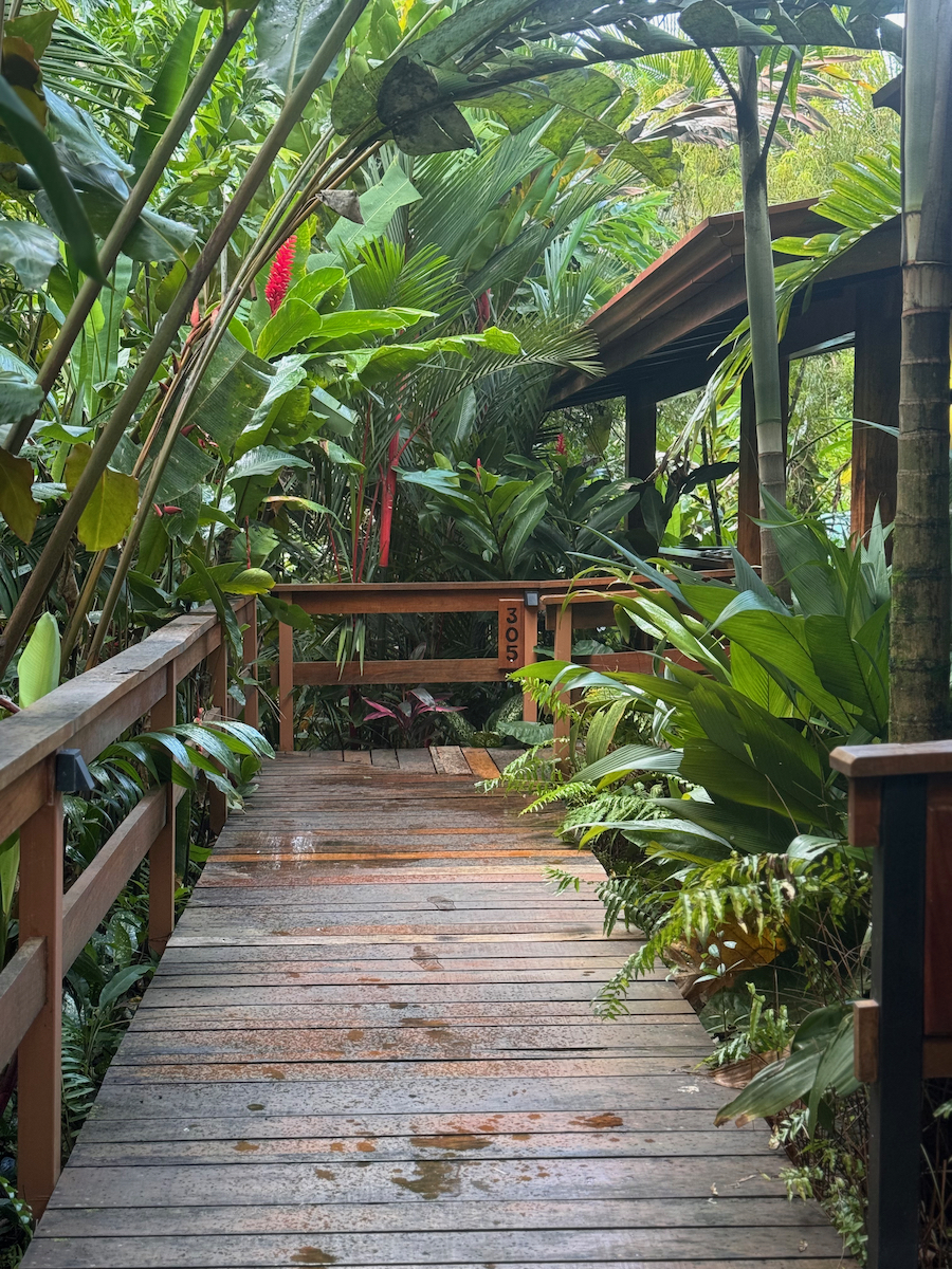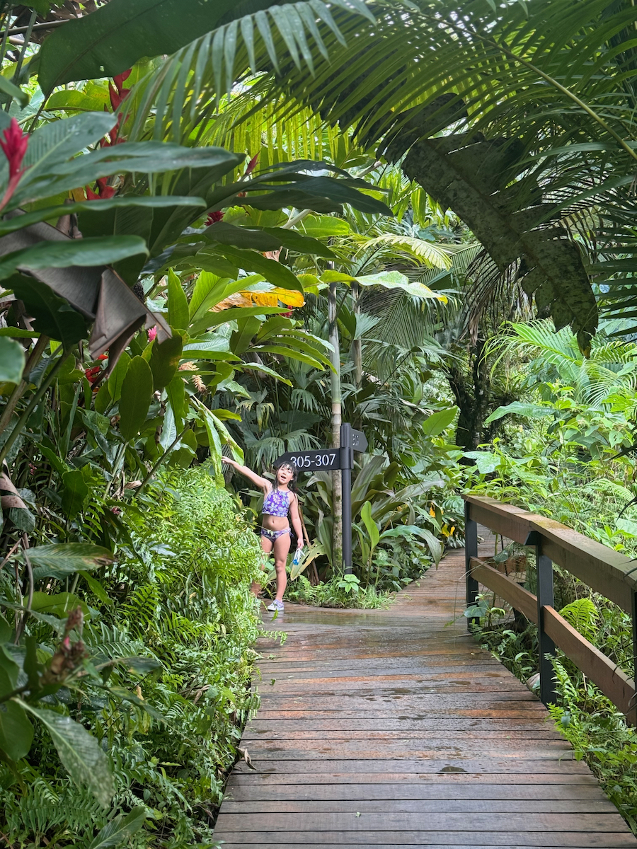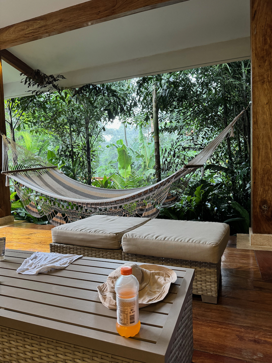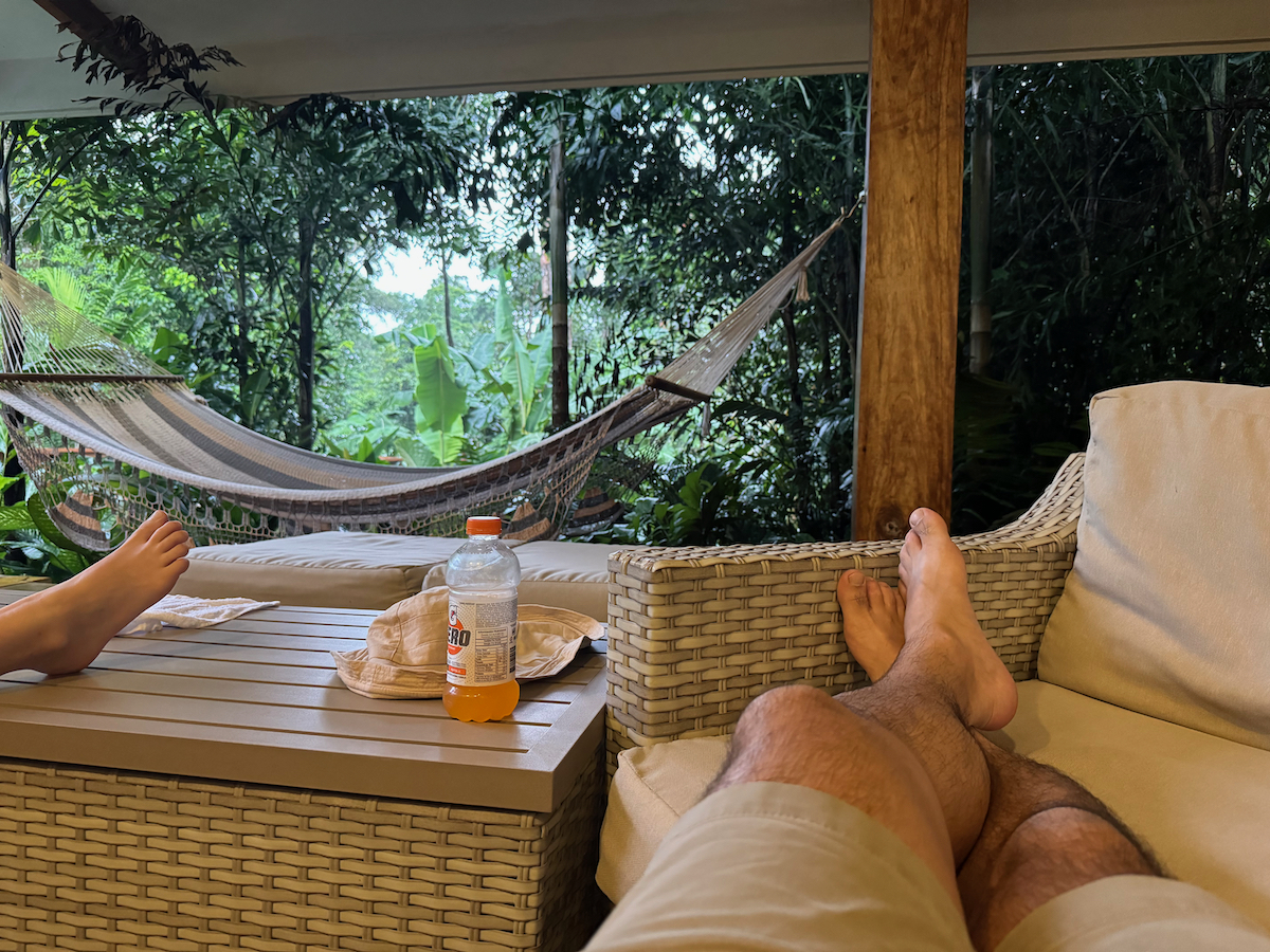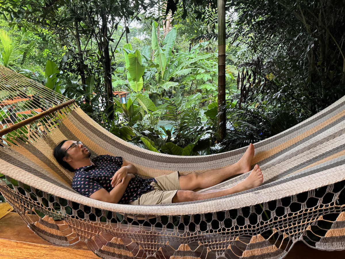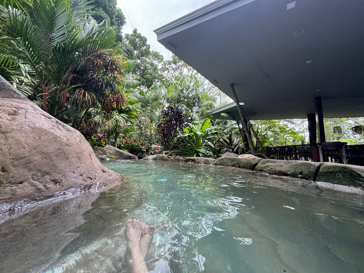 Then it started raining, like it does in rainforests. Magical. The rain hits the surface of the water and we see splashes of glow as it refracts the underwater pool light. It feels like we are inside the Avatar movie Pandora with the plants, rain, frogs sounds, bird sounds, insect sounds, etc. etc. It’s just a fantastic experience out here.