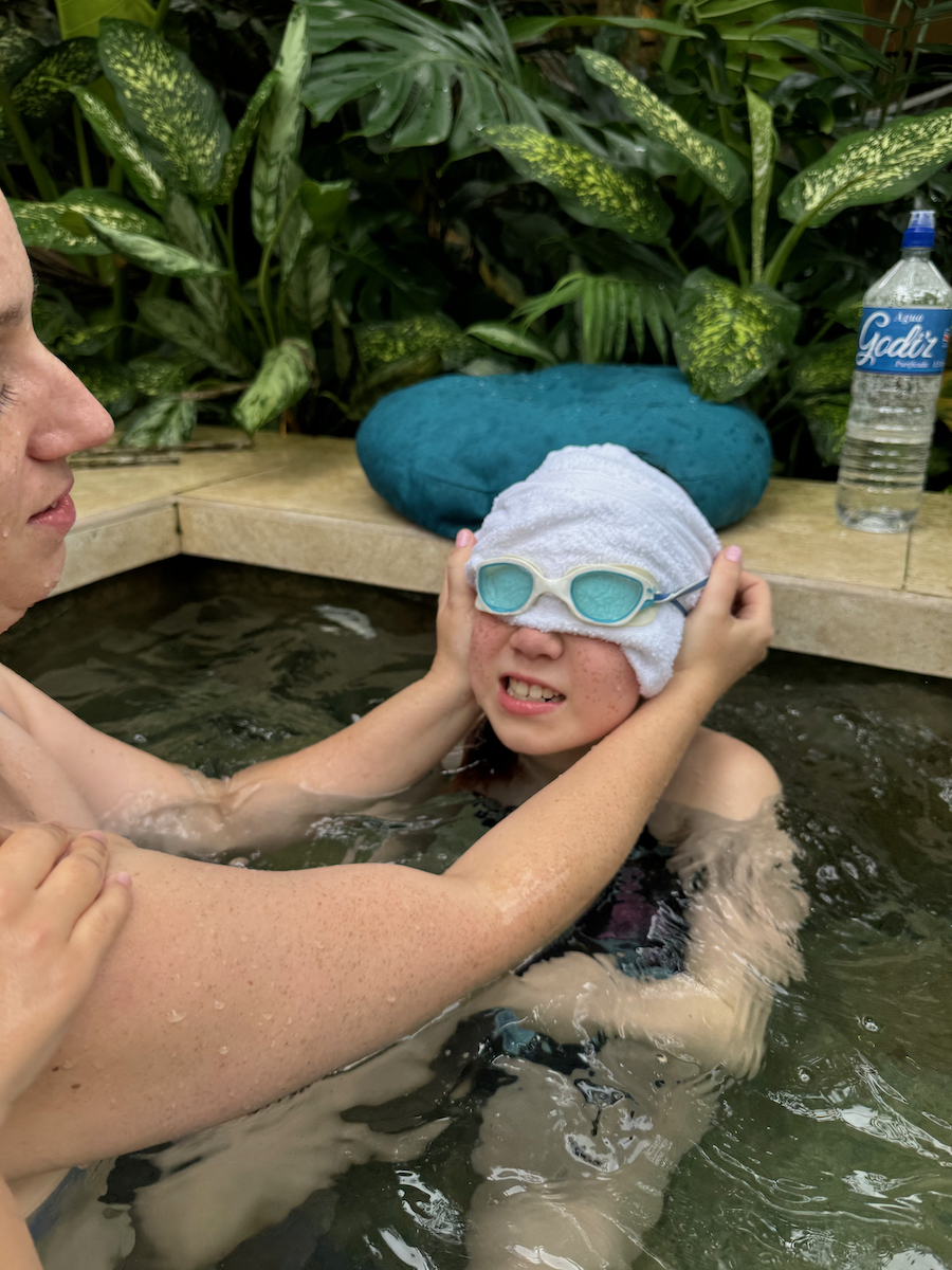We decided to try to move past our frustrations and join the kids in playing Marco Polo. This decision to play with the kids actually turned the whole day around and the kids had a blast playing with us. We had a blast playing with them too.