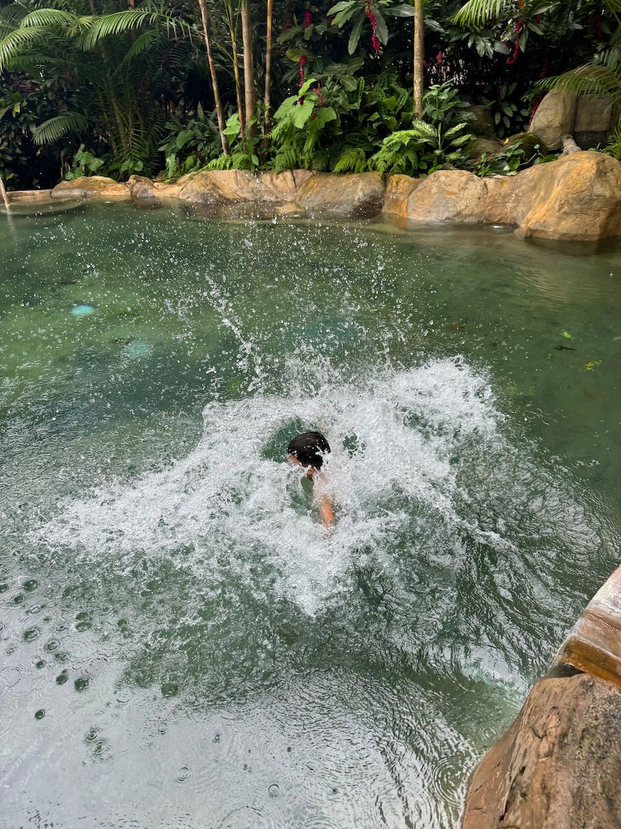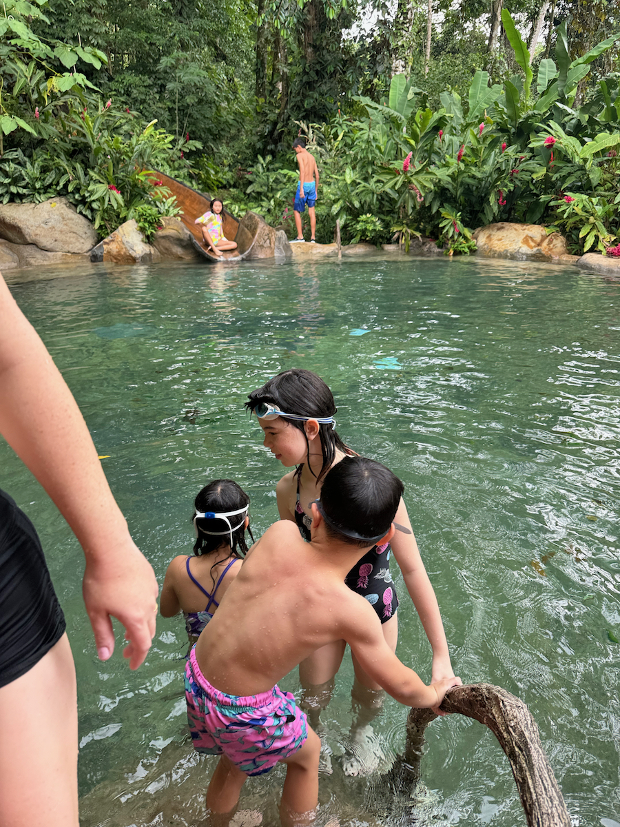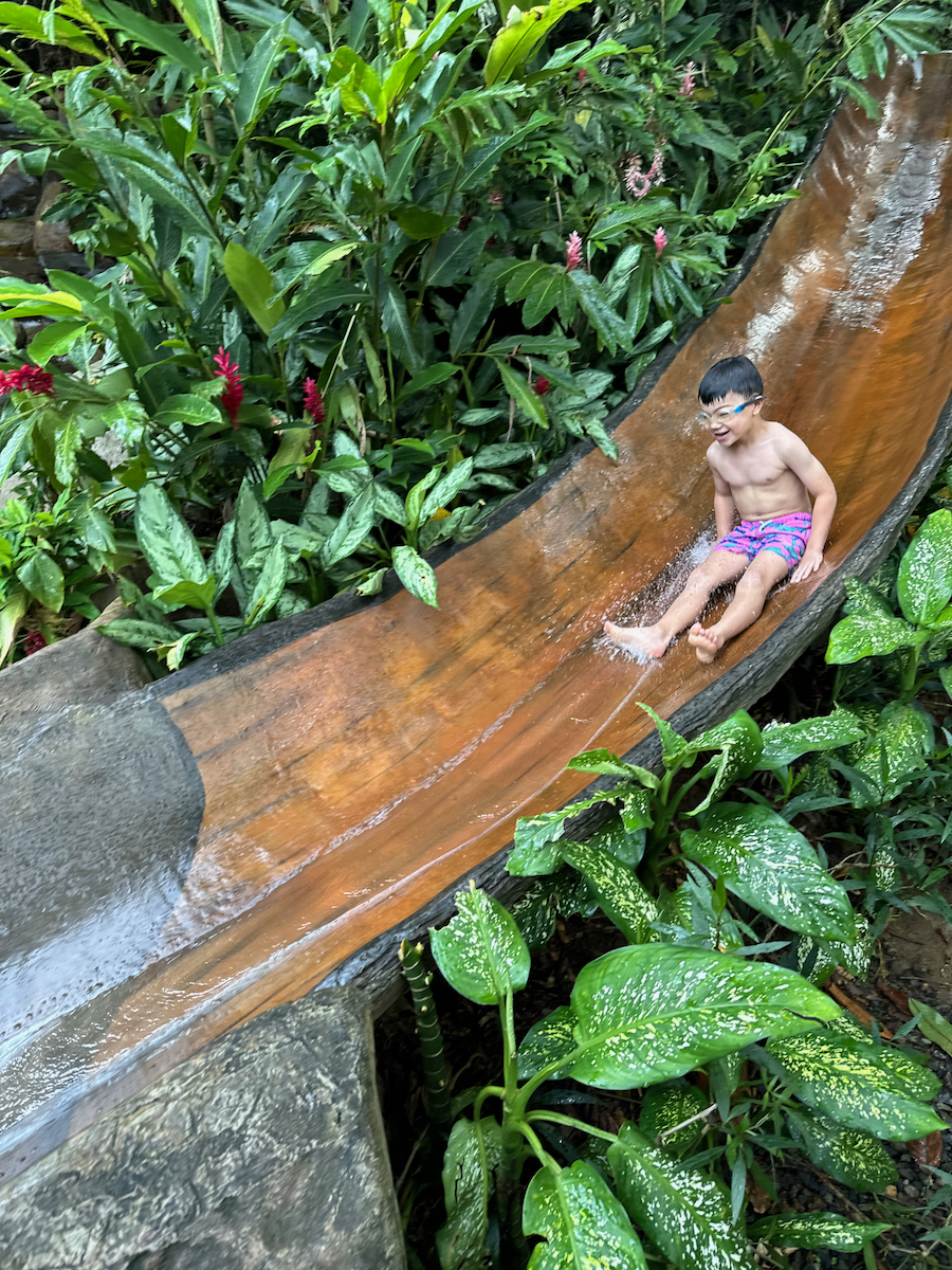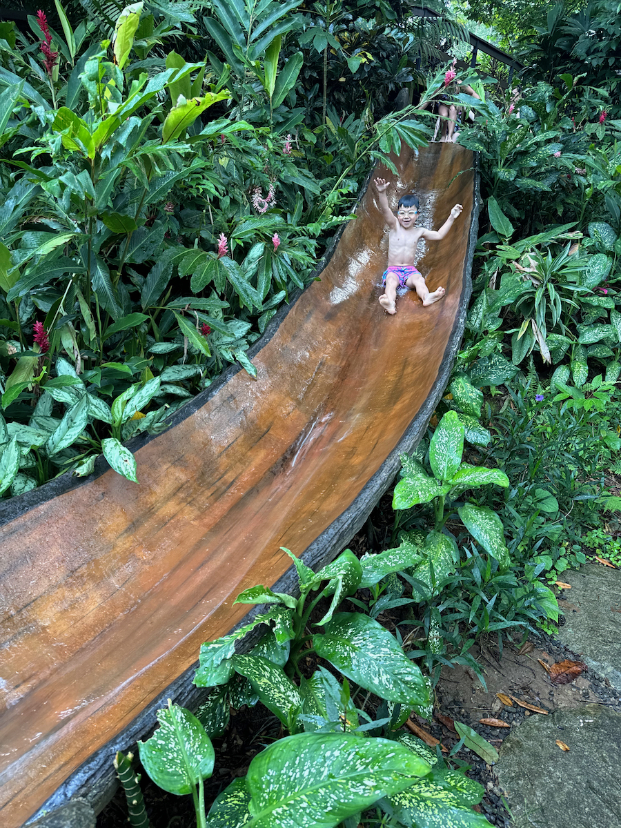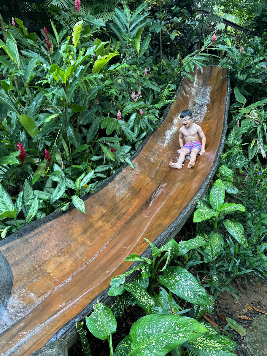 Little KL isn’t strong enough of a swimmer so he just looked on while we did the tall slide.