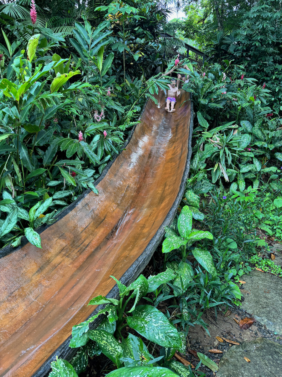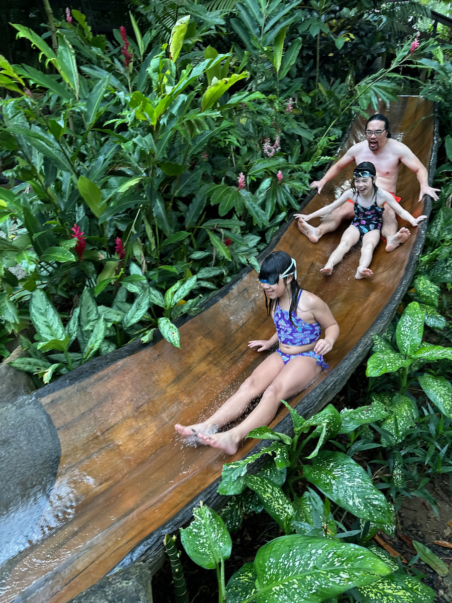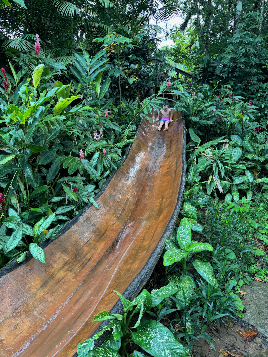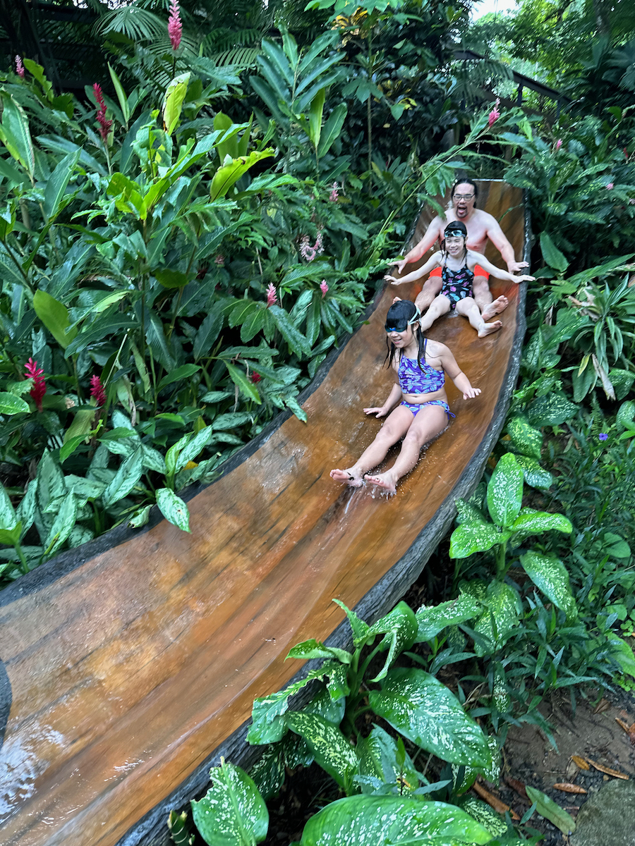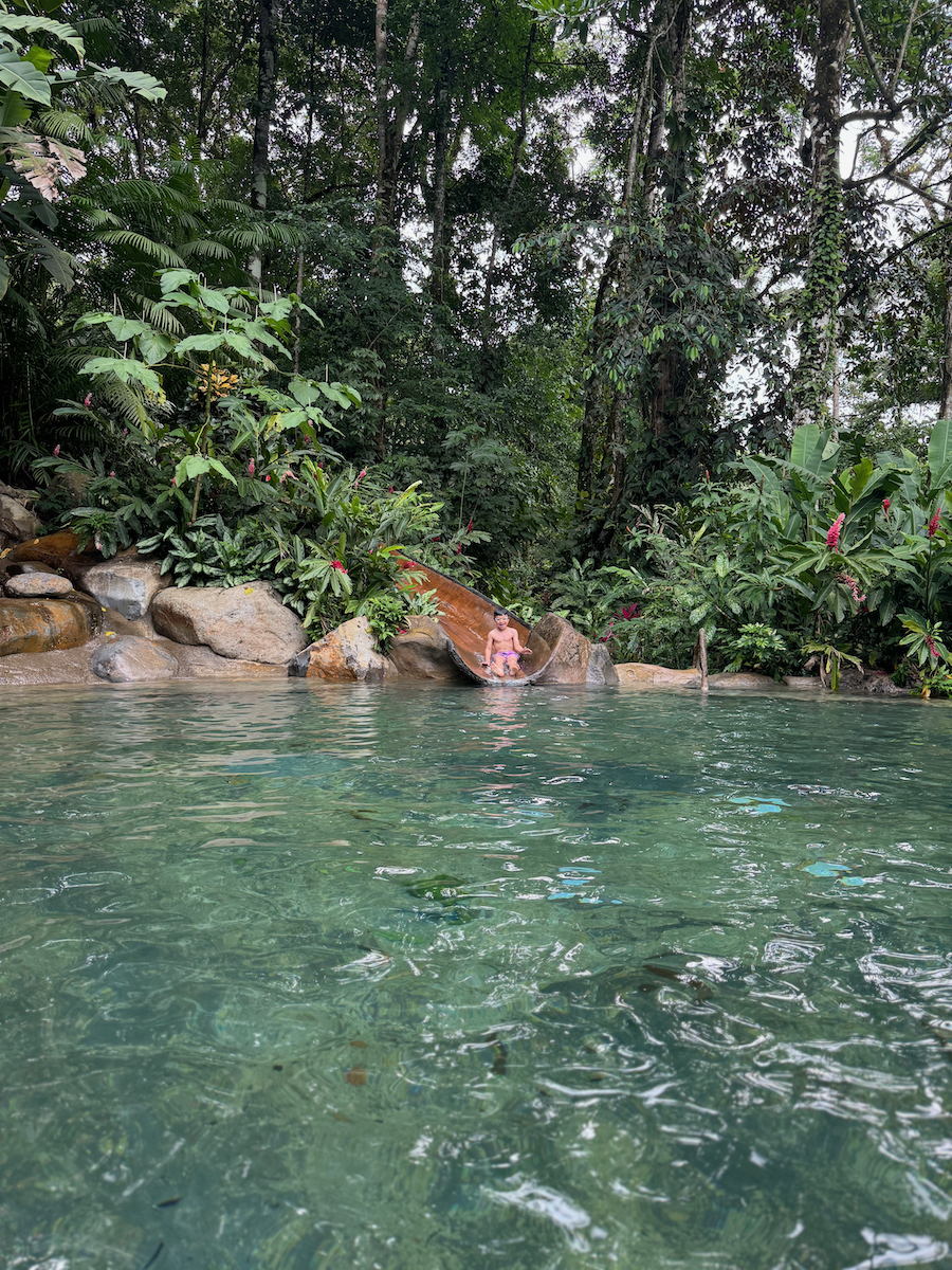 Little KL isn’t strong enough of a swimmer so he just looked on while we did the tall slide.