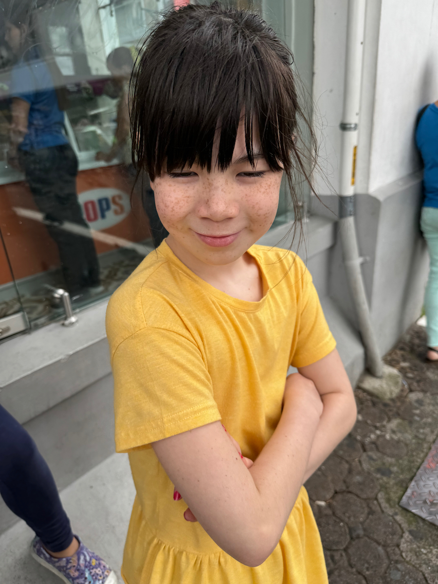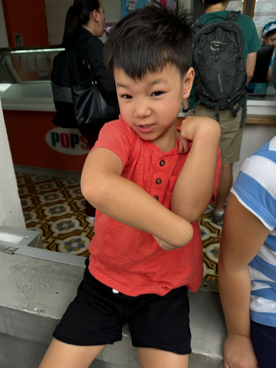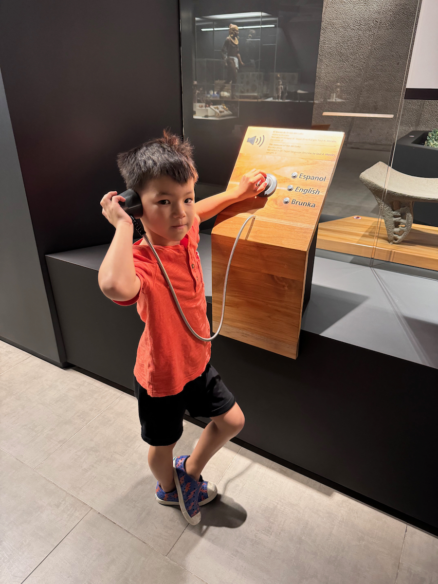 The museum staff are keeping a close watch on us. Our kids are bouncing off the walls, especially this one.