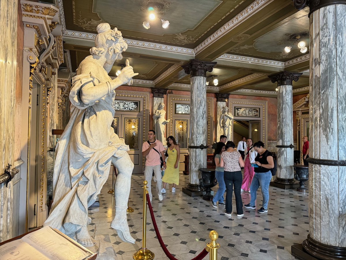 The front of the National Theater. We are looking for a coffee shop that we found on google maps but can’t seem to find in person. I asked a hotel bell boy and he pointed at the National Theater and told us the cafe was located inside. Ahhhh.