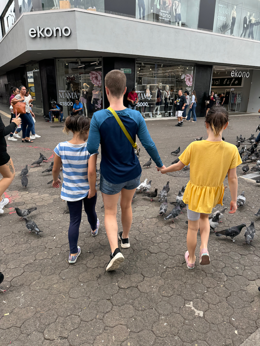 They kept on asking and asking, so finally we said yes. They can walk straight through a flock of pigeons and watch them part ways right ahead of them. I hope this scratched that itch.