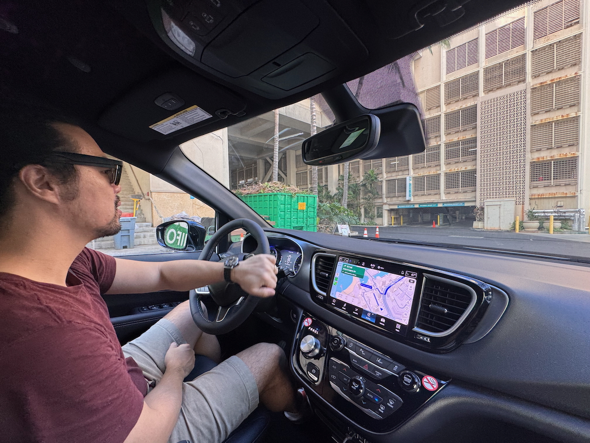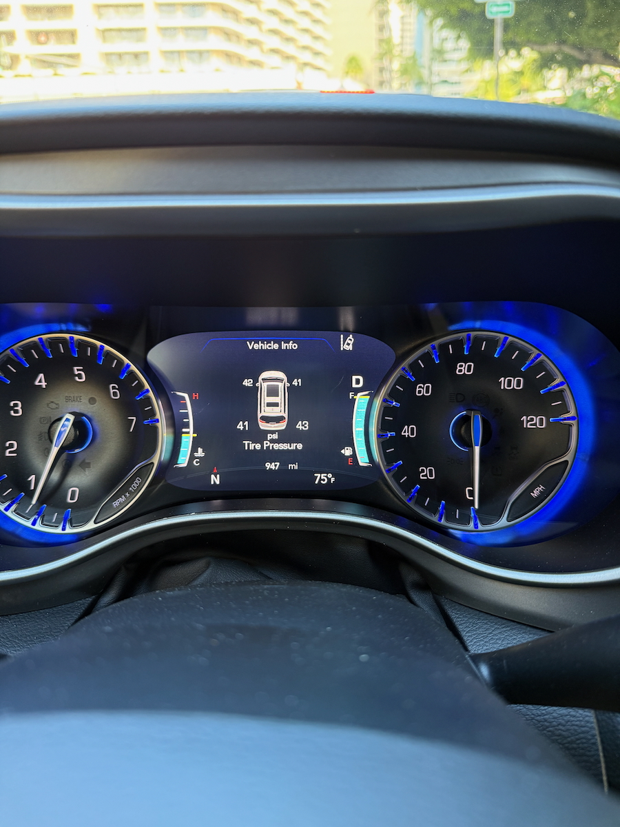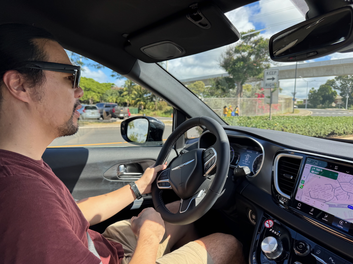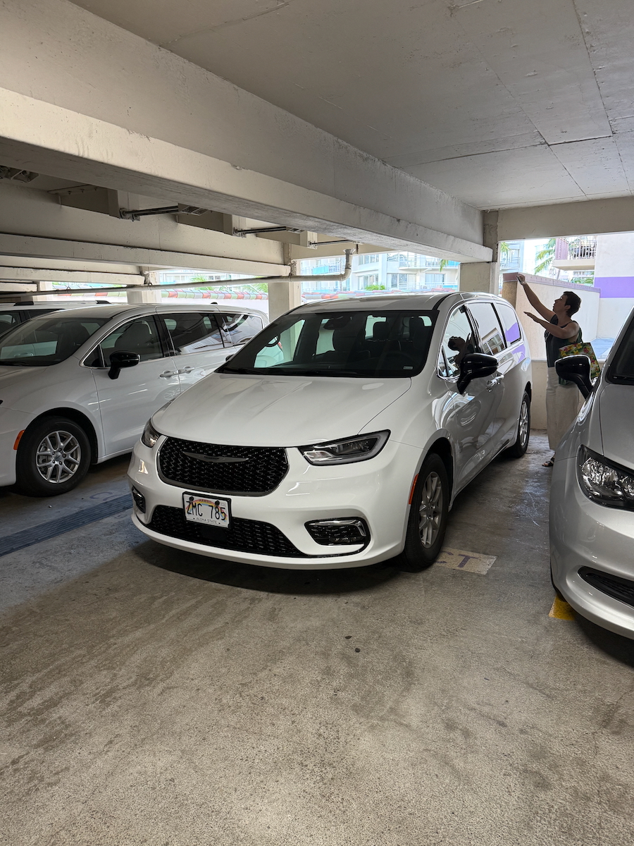 Got our rental car. The beauty of getting a Pacifica is that I know how everything works. It’s almost as if I’m driving my own vehicle.