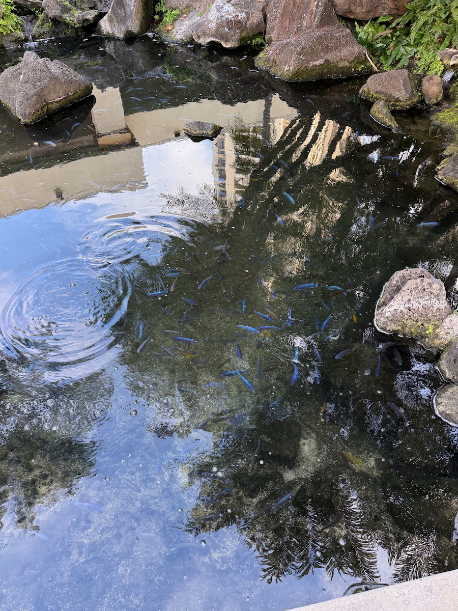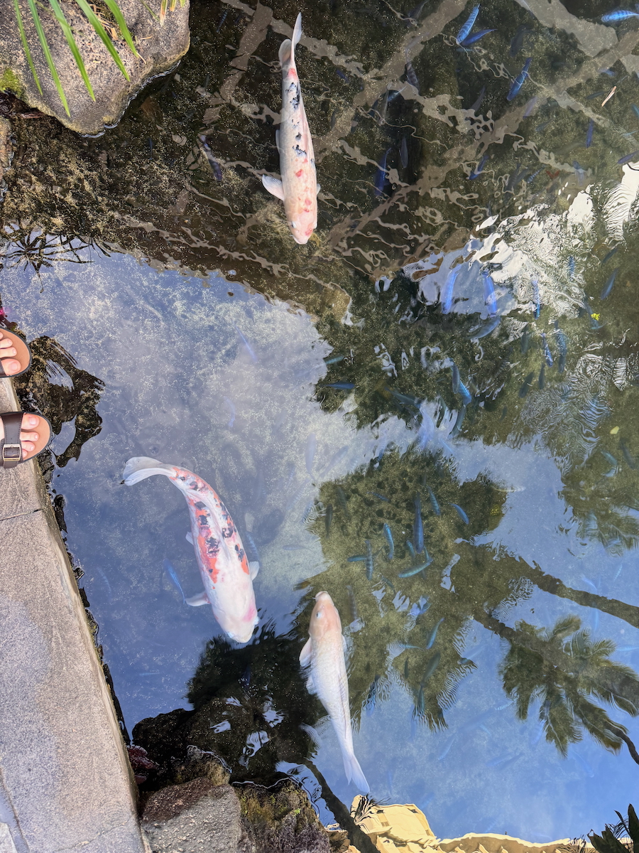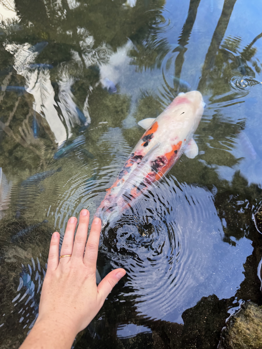This was a giant koi, RL put her hand down for size reference and the fish got scared…