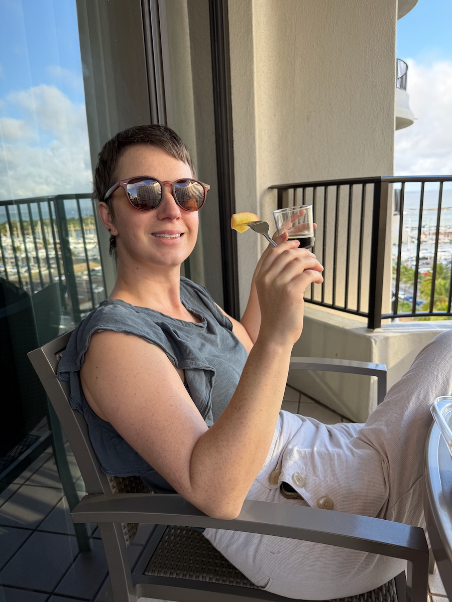 Drinks! Ordered doubles so I don’t have to keep going back to the bar as often.