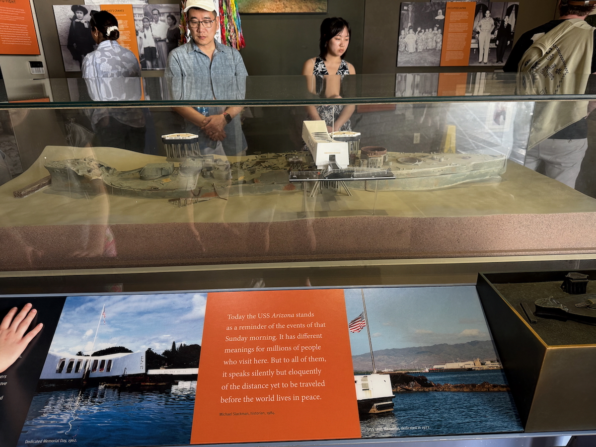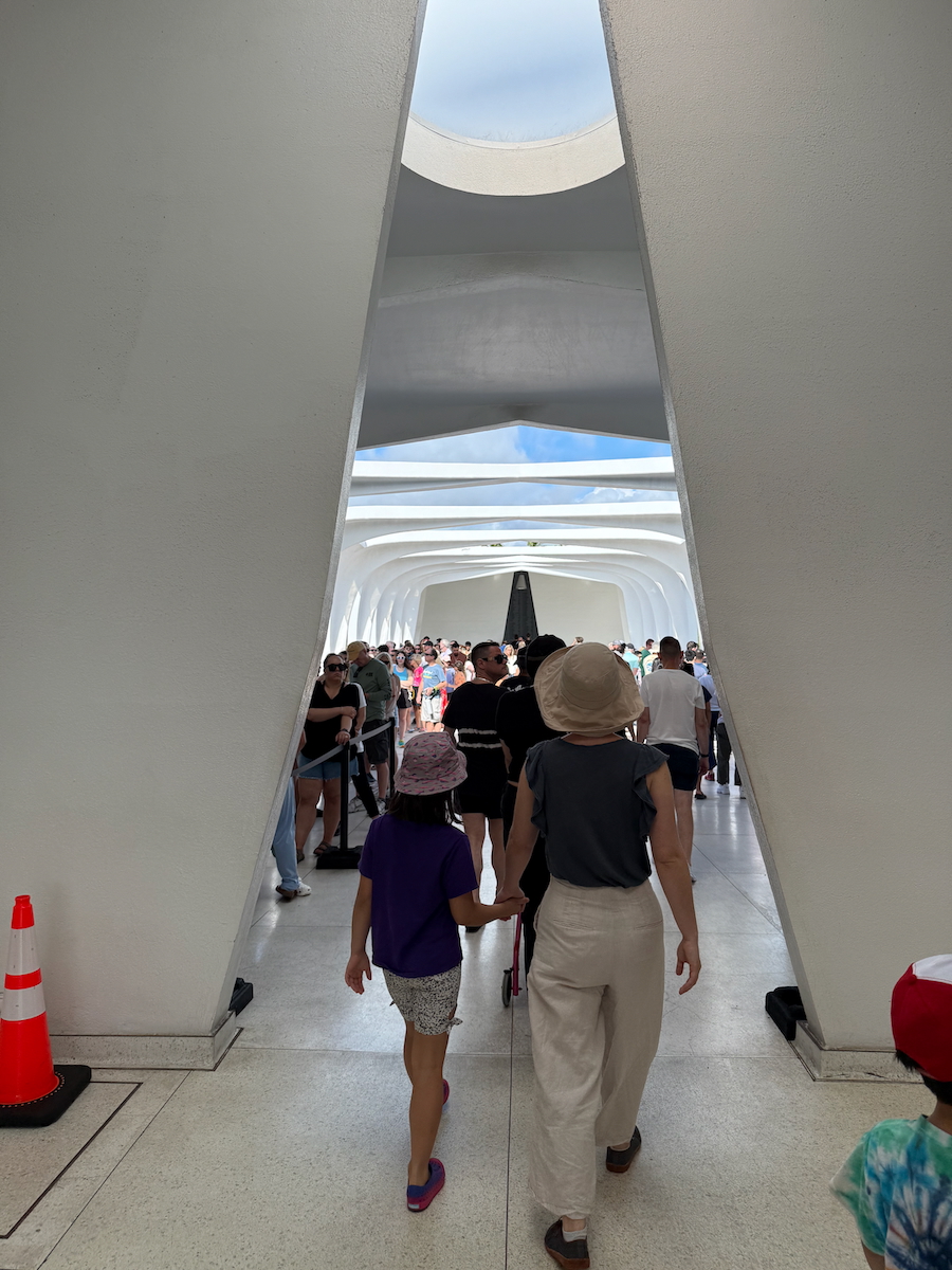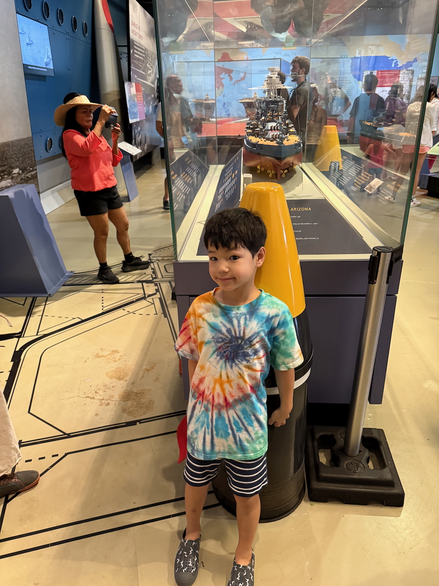 On our way to the short ferry ride to the Arizona Memorial. I remember making this trip as a kid some 30 years ago. I was about PL’s age and I still remember it today. Hopefully this means my kids will also remember making this trip as well when they become adults.