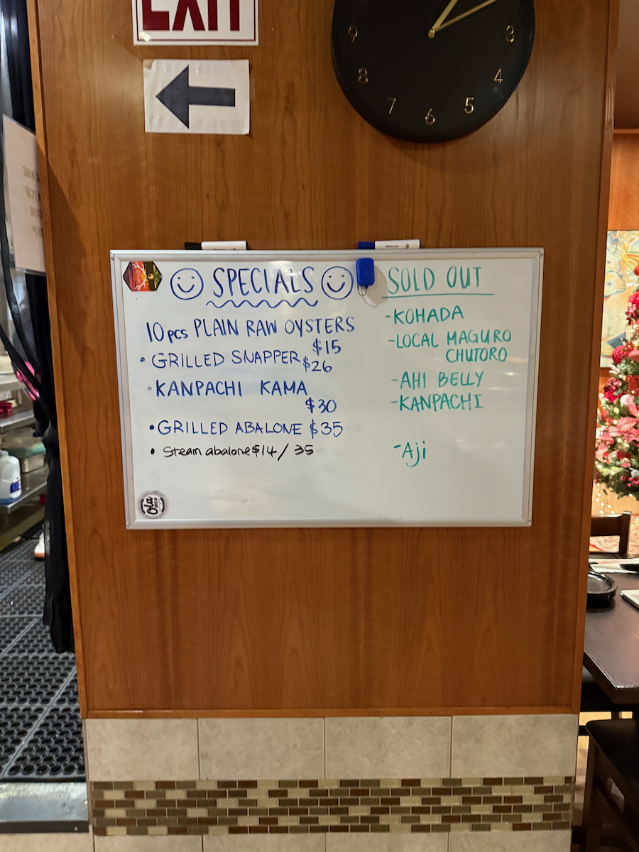 Went looking for the restroom inside the restaurant, only to open the door and be in the back of a warehouse. This sushi place is the restaurant portion of a fish wholeseller.