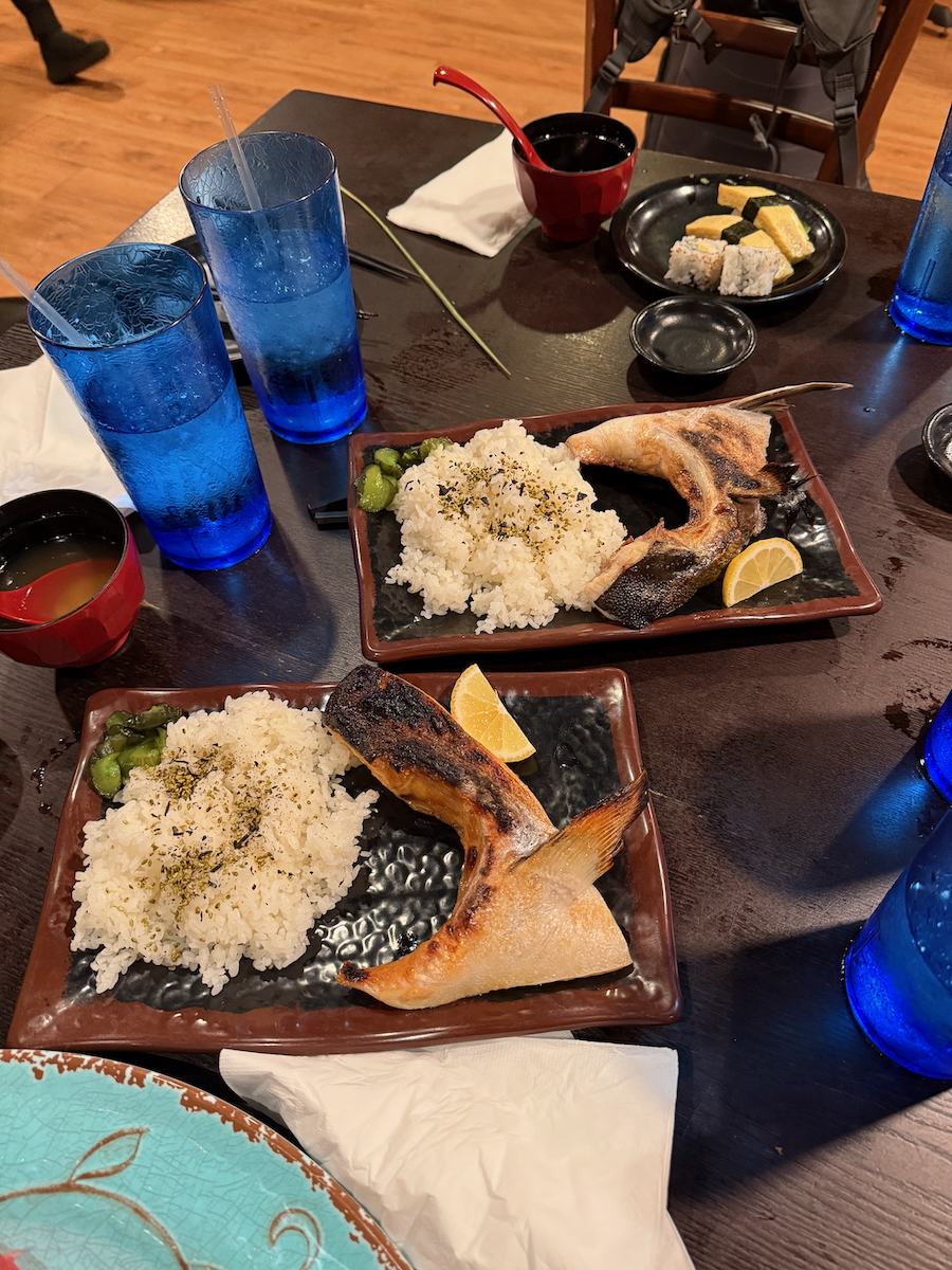 Fish chins for ahma. The salmon kama was out of this world. Incredible lunch, only tainted by that long vomit clean up job. Ugh.