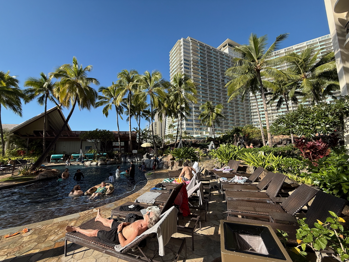 It’s not super crowded. We found a lounge chair to put our towels down without too much trouble.