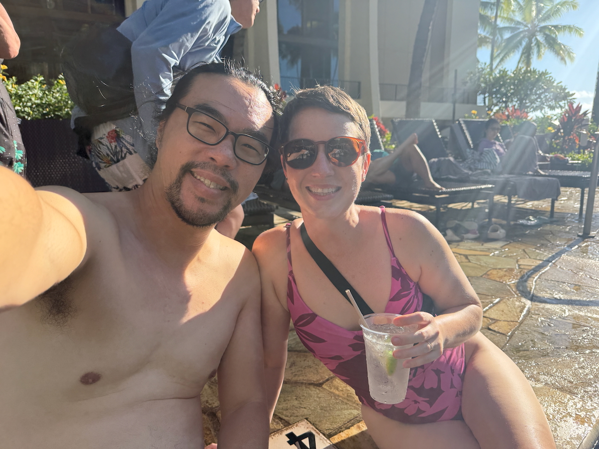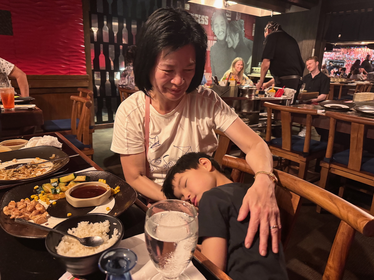 Speaking of kids, jetlag has kicked in big time for them. Austin is 4 hours ahead of Hawaii, so it’s well past their bedtime right now.