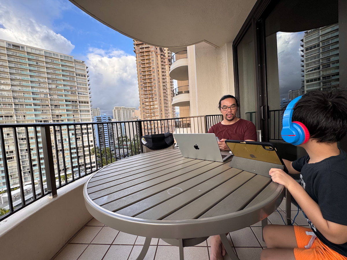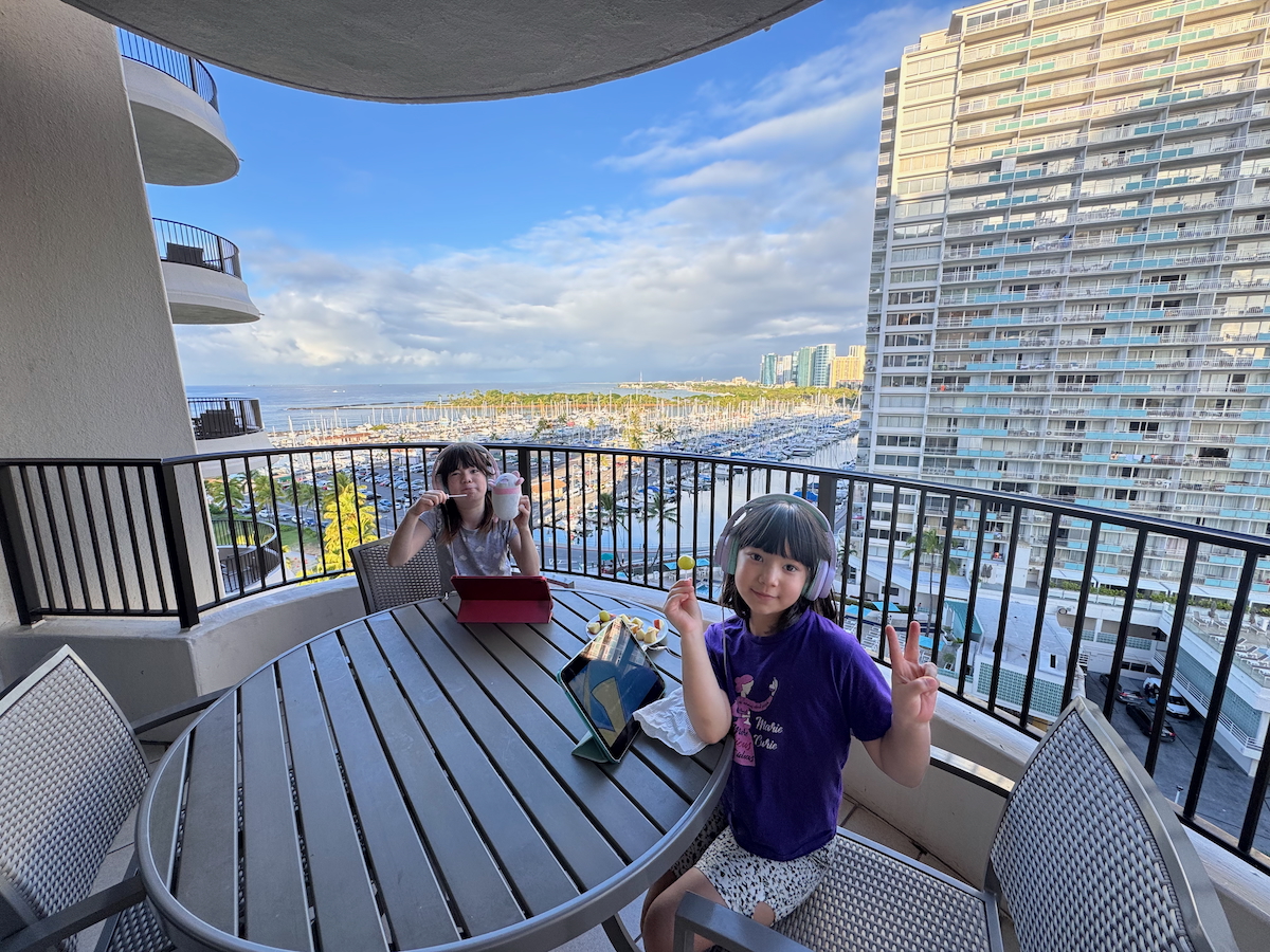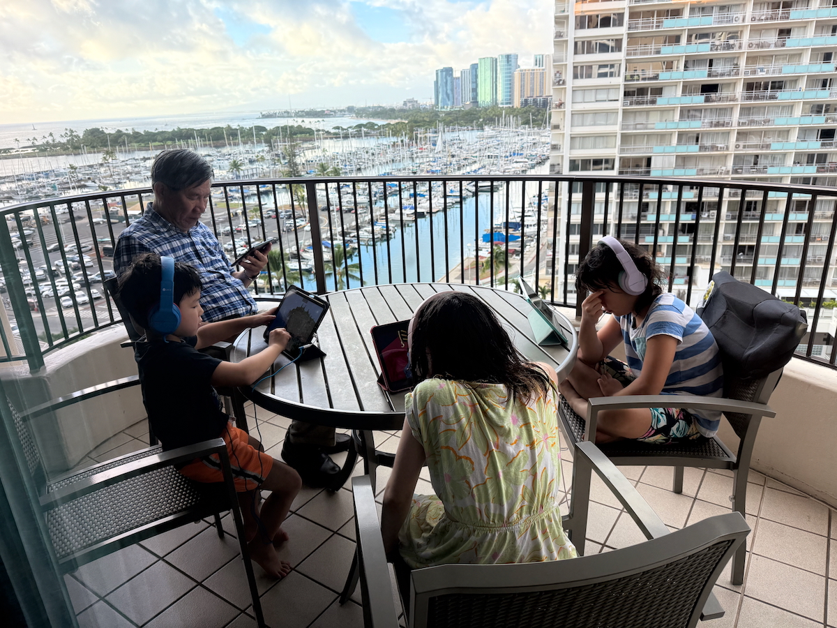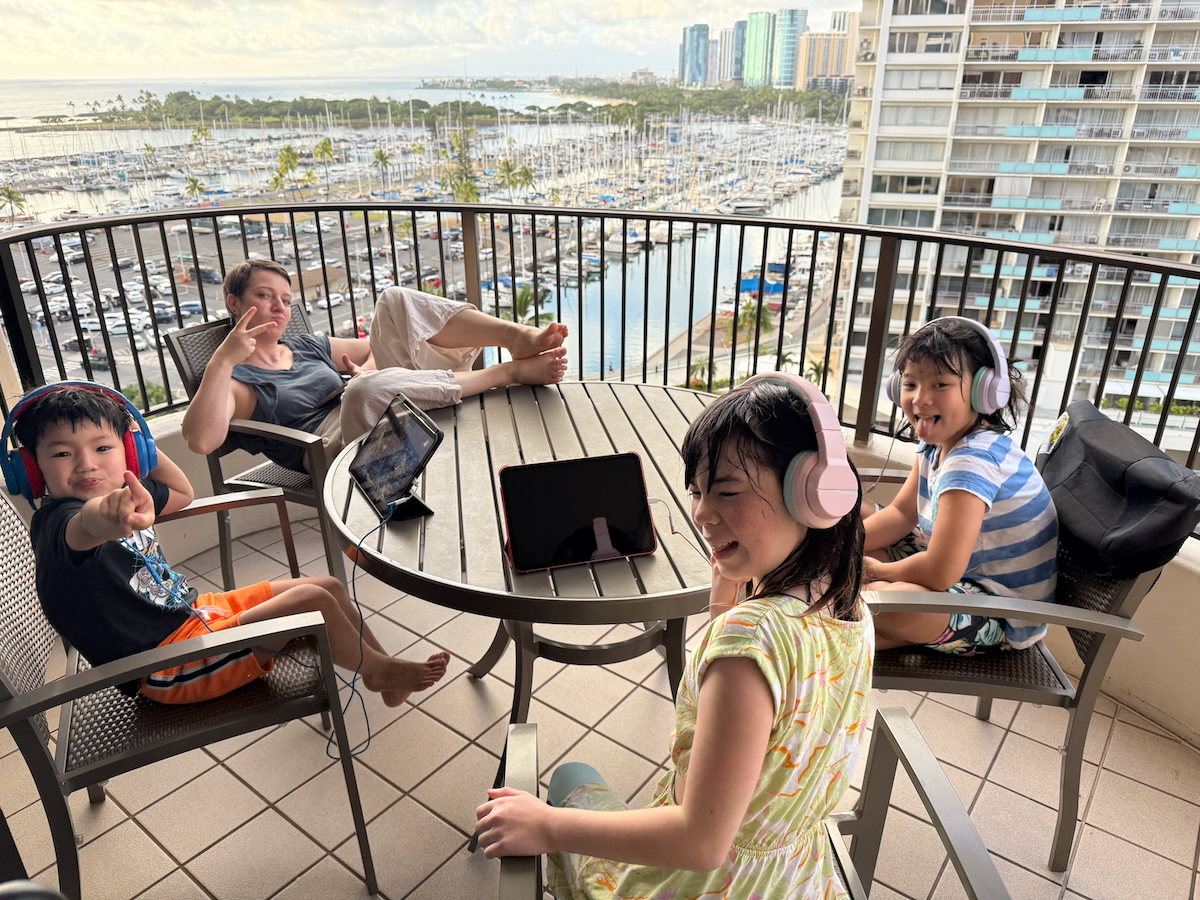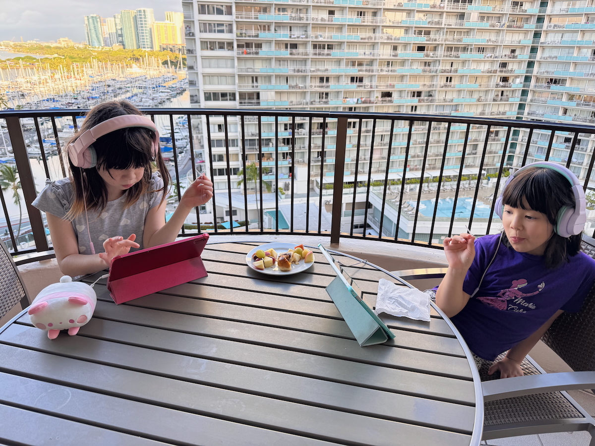Living their best life. Jetlag means they wake up extra early and get on their ipads until the rest of us are up and about.