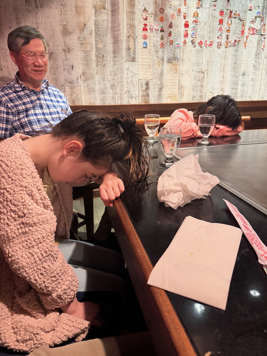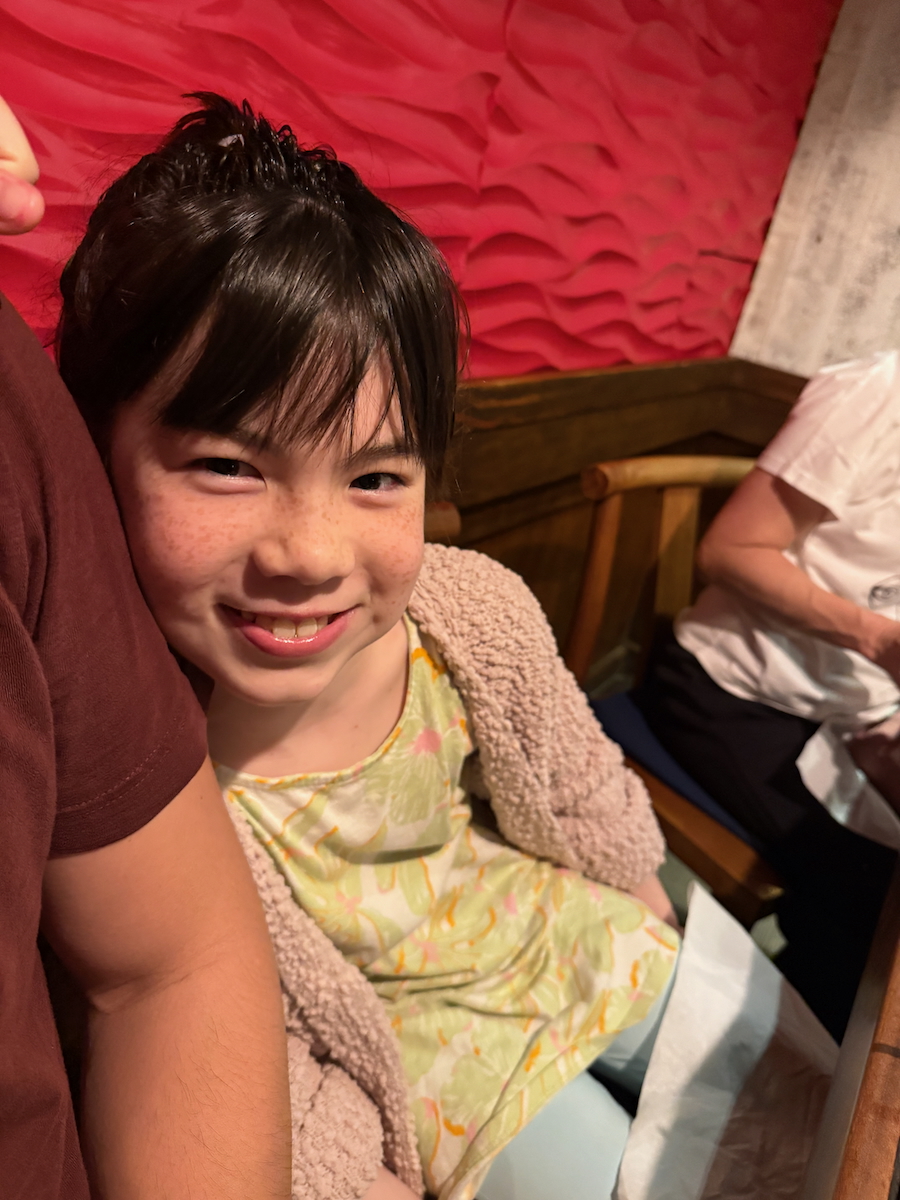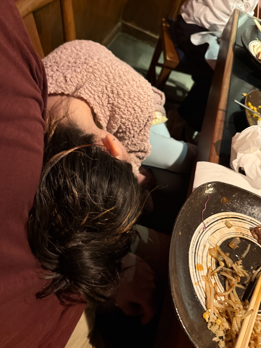 And as we were trying to park, disaster struck. CL gave us a 10 second warning that she’s about to throw up….and before any of us could get anything, she puked all over the car. FFFFuuuccckkkk….Ahma managed to grab CL’s Meow Wolf bucket hat to try to catch the rest of it. It helped a little, but now the whole car smells like vomit. It was really stressful. We had no cleaning supplies except for some tissues. Fuck.