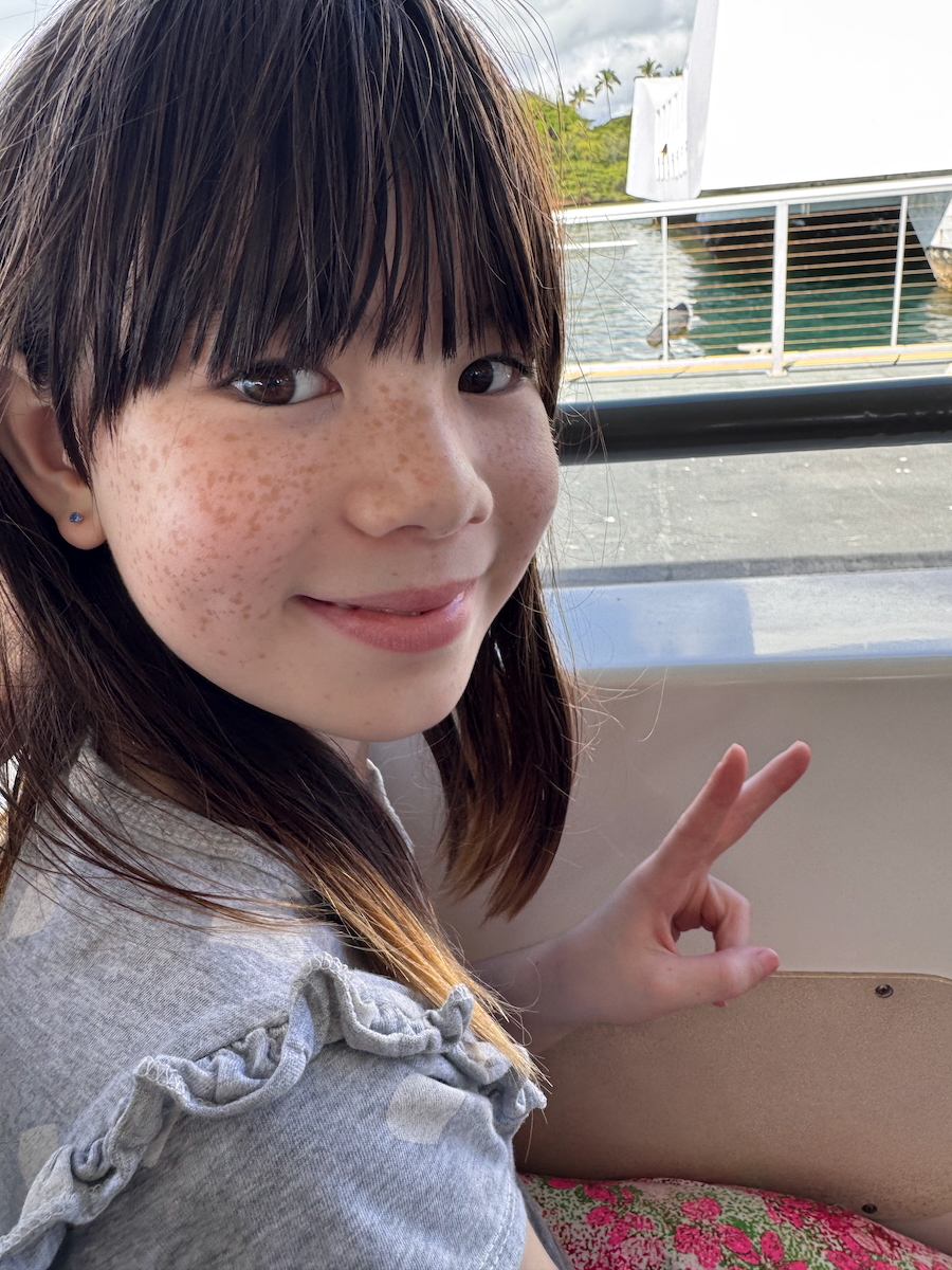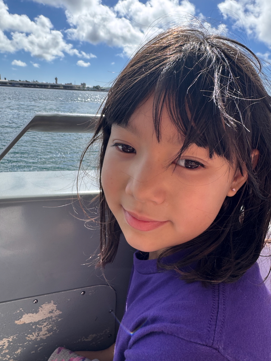We had her sit by the side of the boat in case she needs to throw up. She’s slowly feeling better though.