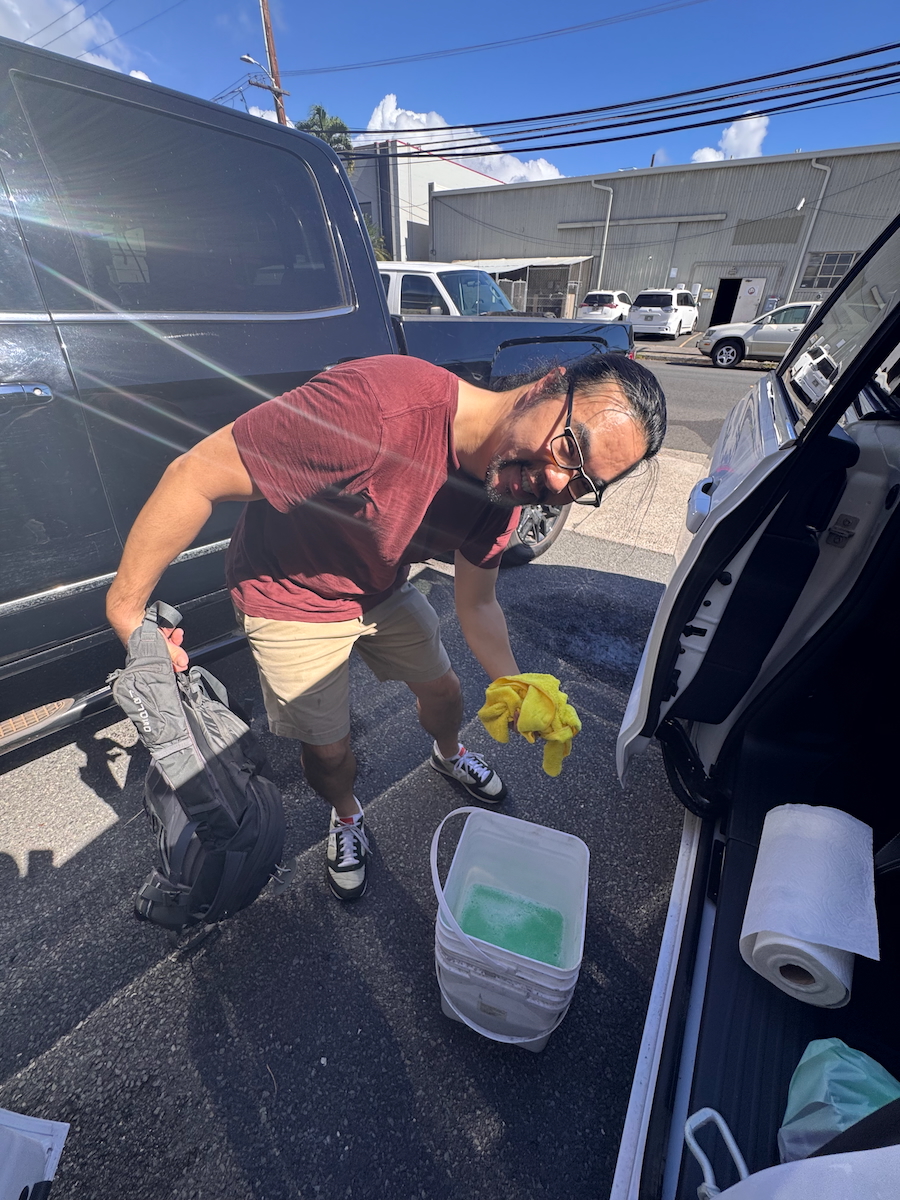 Finally, the owner of Mitch’s sushi, Mitch’s son happened to come into the restaurant and offered even more help. Got us a bucket of simple green and some rags. Thank you!!!!