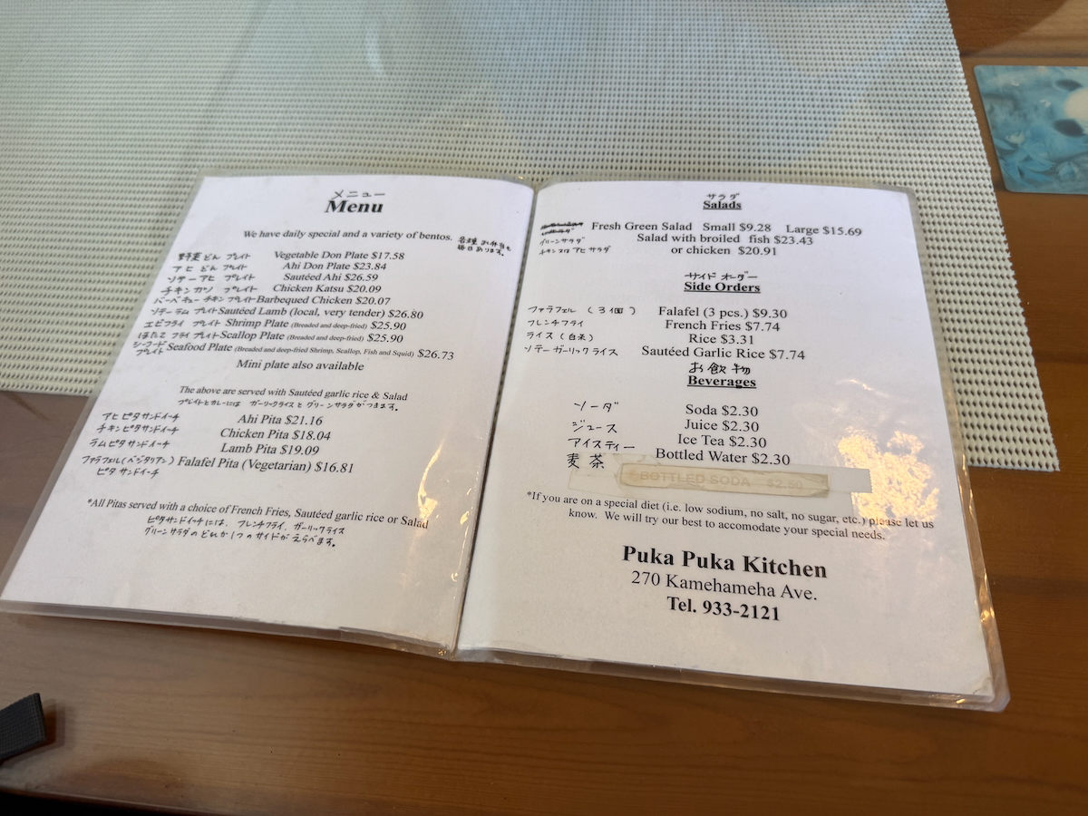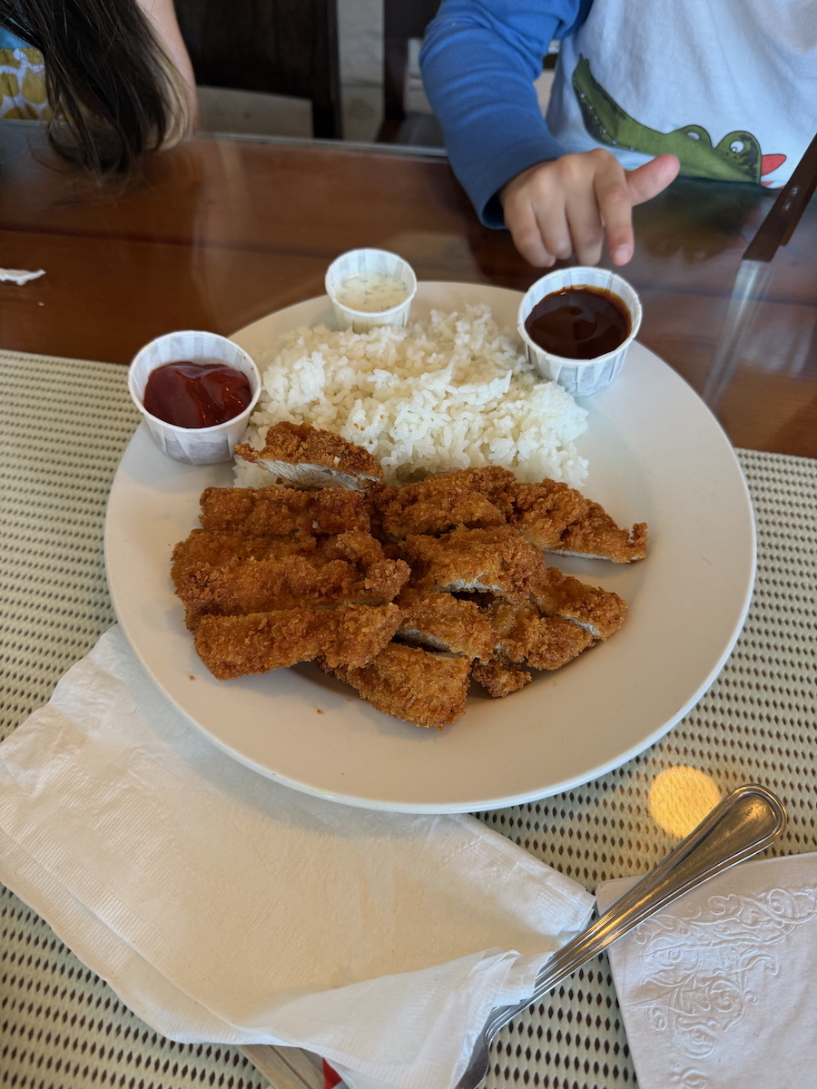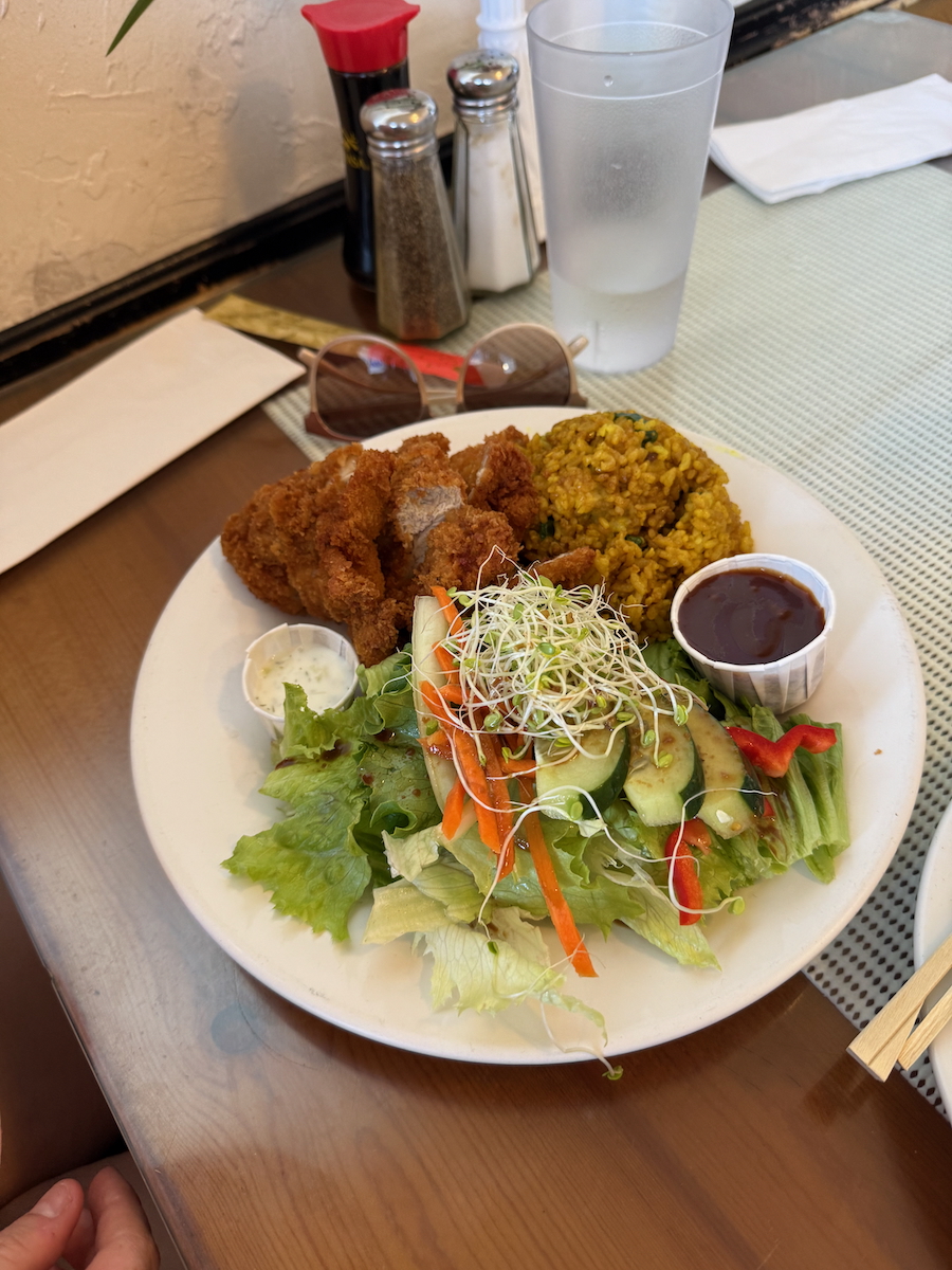 And chicken katsu. Odd to have falafels and katsu on the same menu. They also seem to be a much bigger fan of chicken katsu than pork in Hawaii.