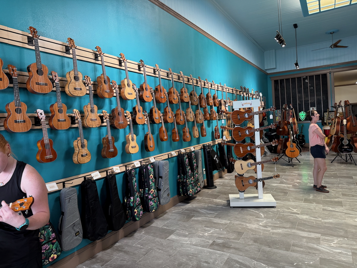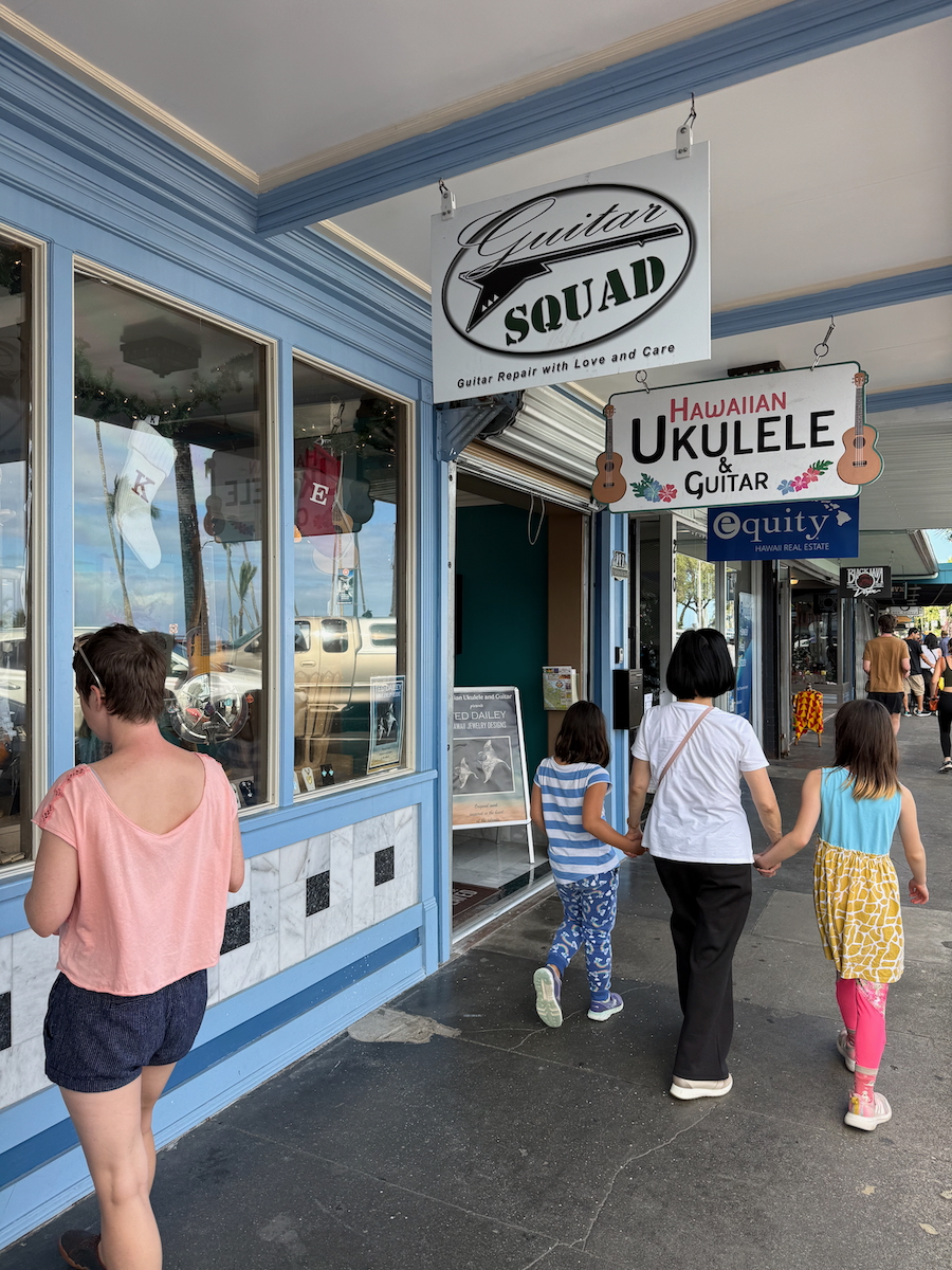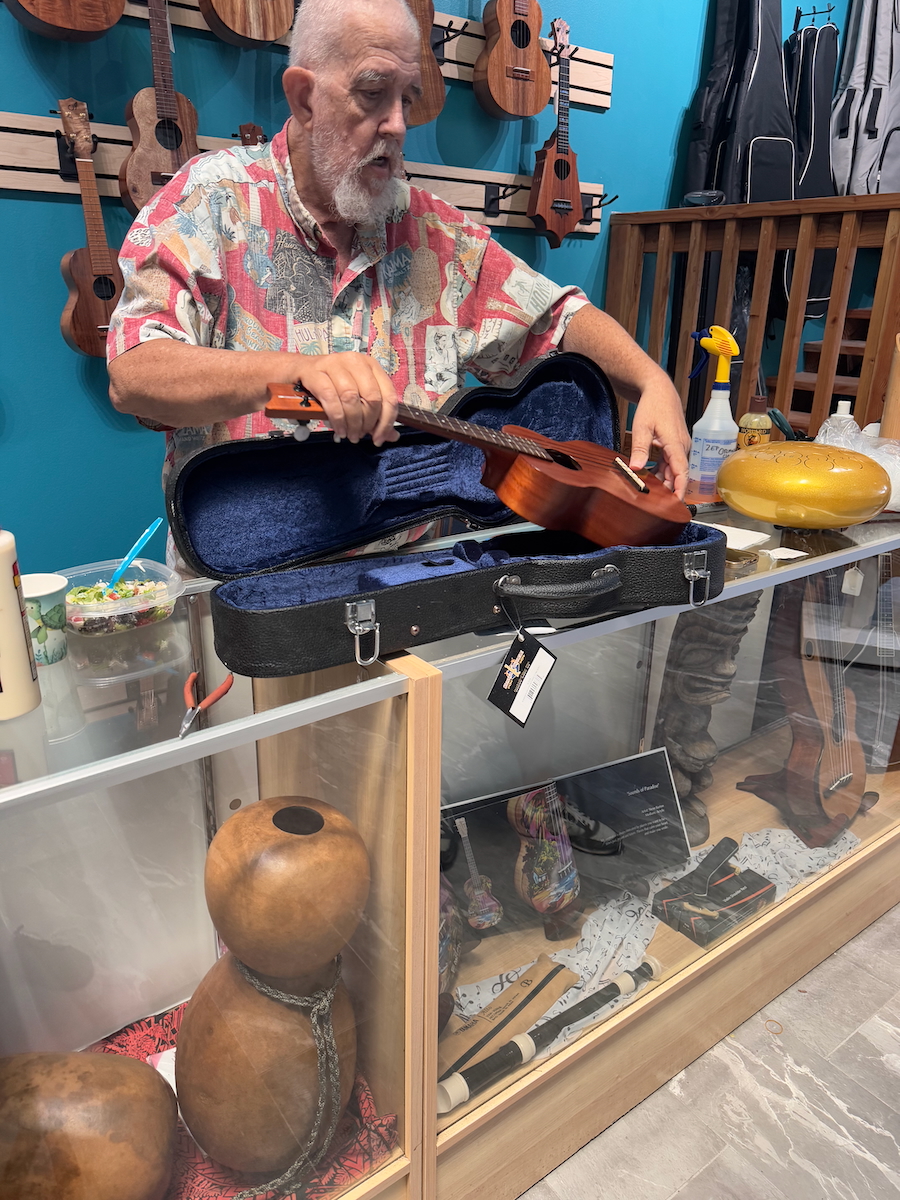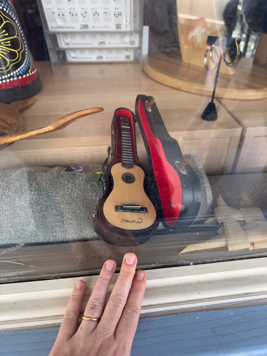 After listening to quite a few different ukuleles, this Kamaka concert ukulele is coming home with us. Not a cheap instrument, but it sounds sooo good!! Don’t know how to play, but my goal is to learn how to play it. I’m not big on souvenirs, so I was surprised that this one took on a life of its own for me to the point where I really wanted an ukulele. Reminds me a little bit about when I heard an accordion in Europe being played by a busker and that ended up with me buying and learning how to play an accordion. I guess I like musical instruments.