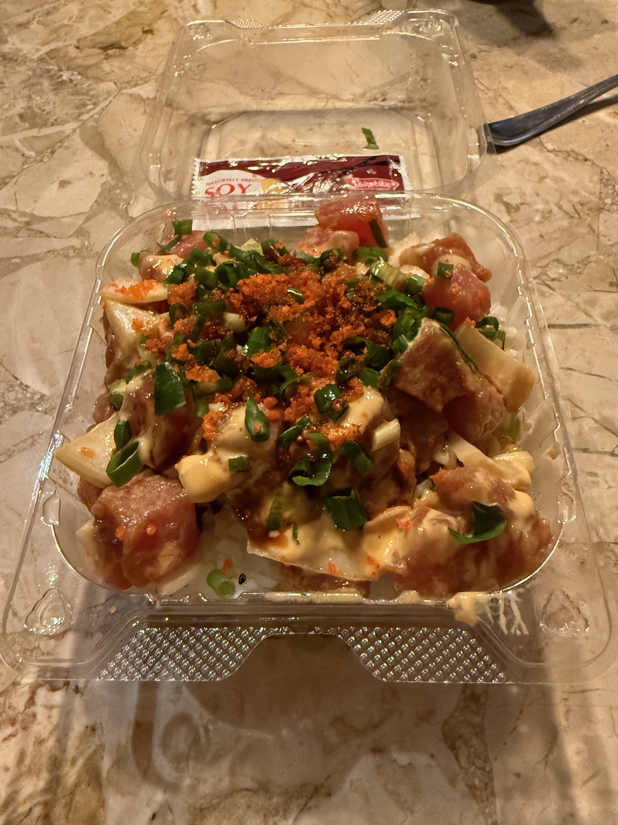 And seared tuna. What an eclectic mix of food. Apparently this place is very local Hawaiian fare. I guess it’s a mix of cultures and foods.