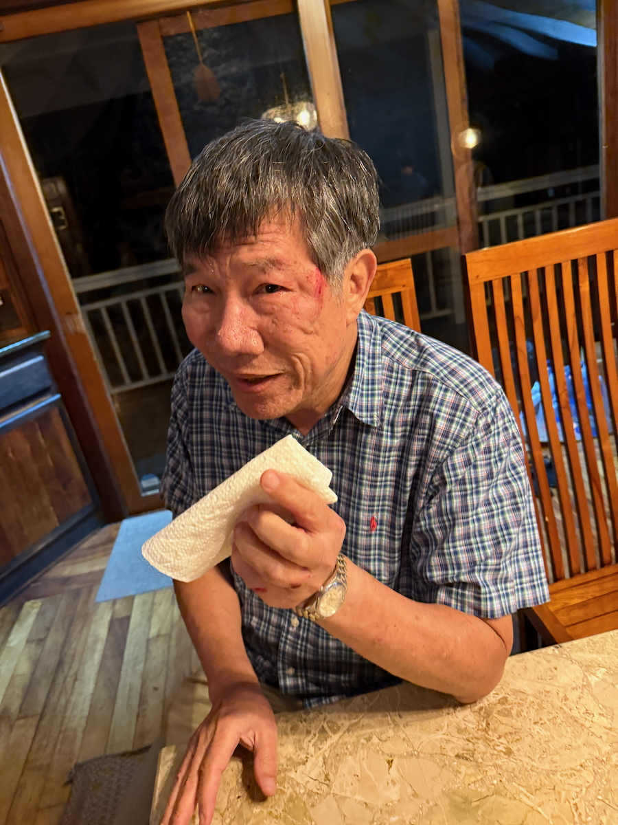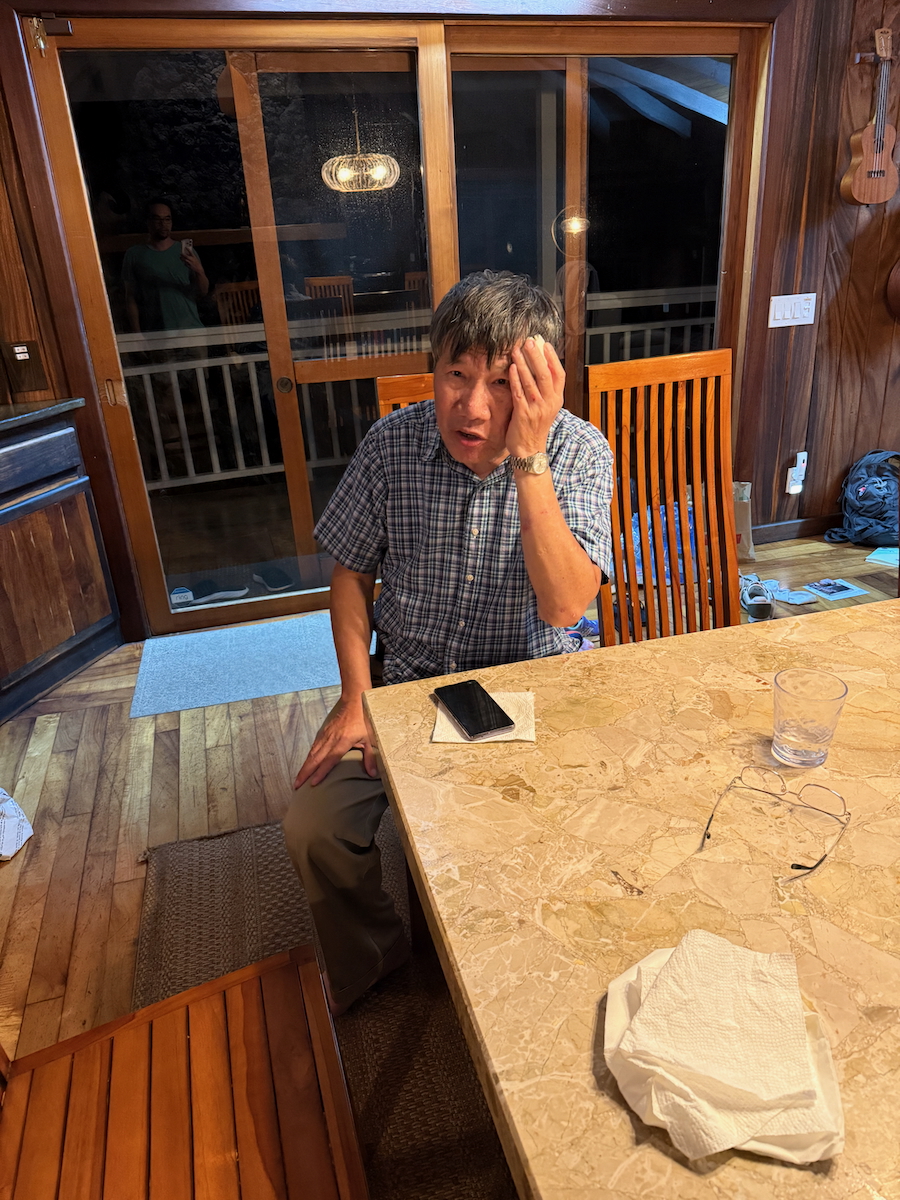 This airbnb has strict smoking rules. You can’t smoke on property, so ah gong has 3 smoking location options. The end of the long winding driveway onto the street, the side gate that exits onto another street, or all the way past the edge of the property onto the public beach. I told him not to go to the rocky public beach, but of course, he says he’s been there and he’ll be careful.