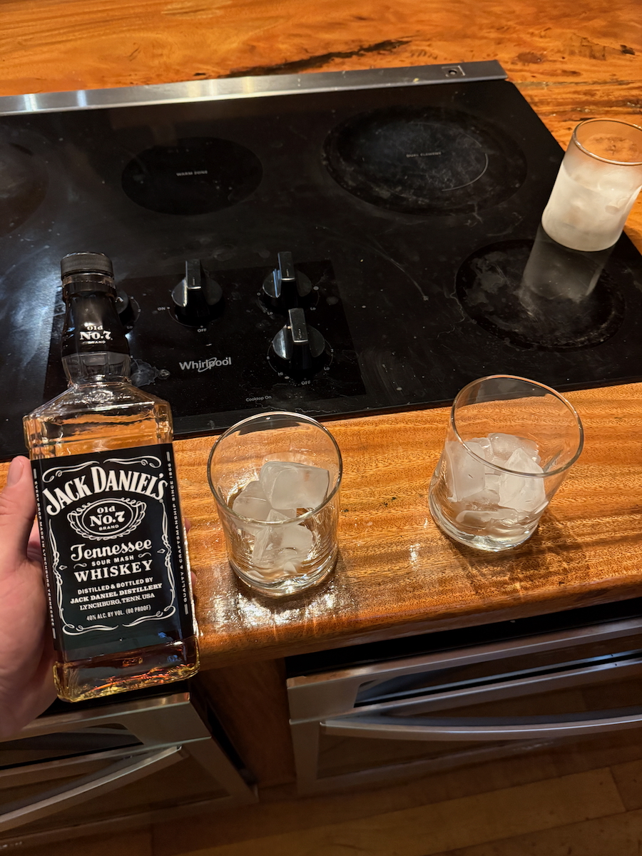 After that very stressful and perhaps lucky outcome, time for a drink. They sell liquor at the grocery stores here in Hawaii, so we had picked this up a couple night ago. Coming into good use tonight.