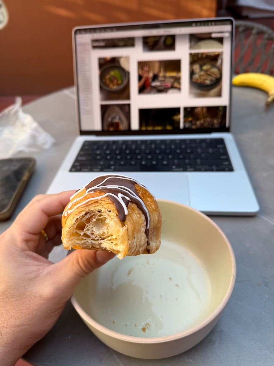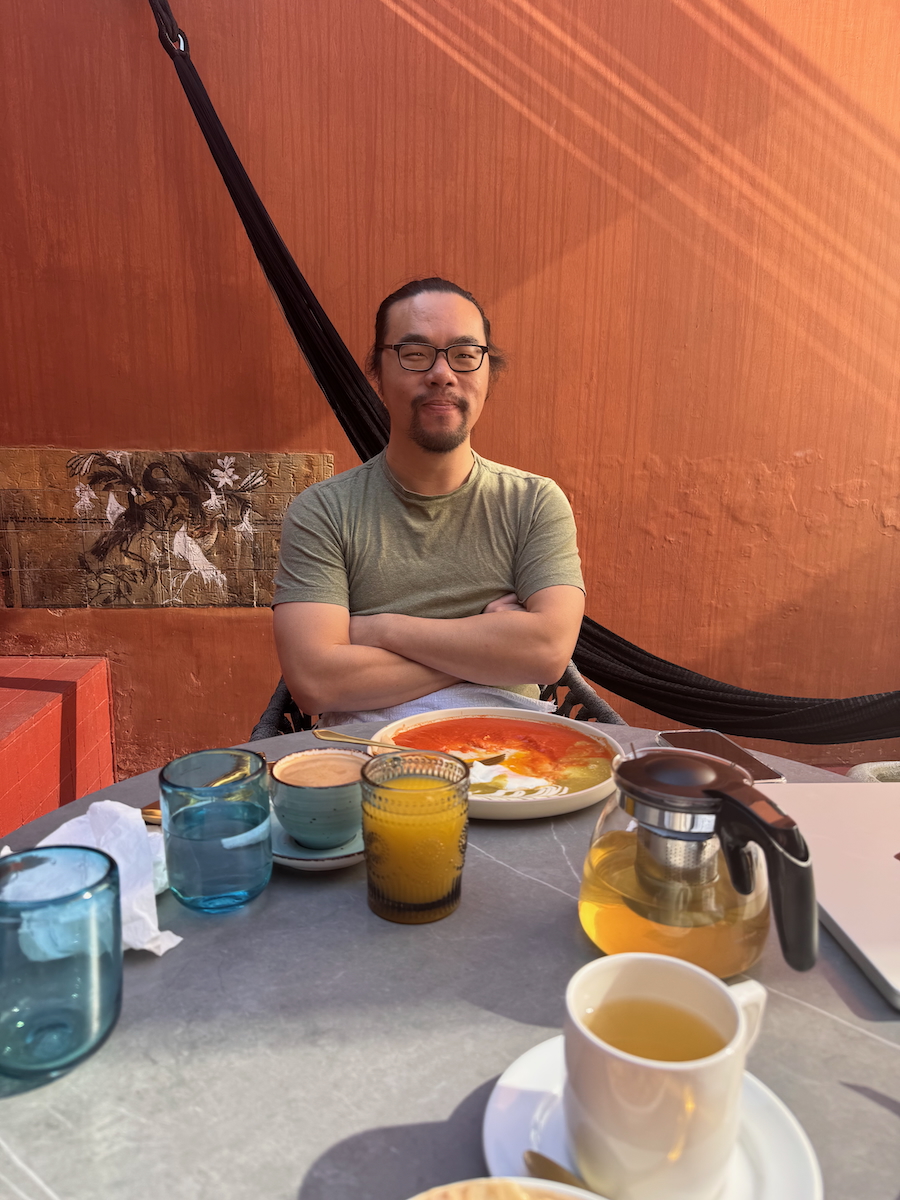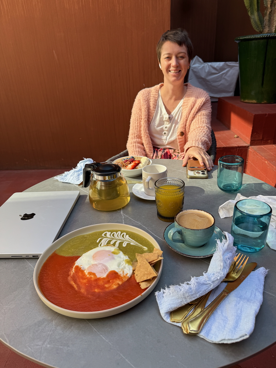 Breakfast arrives. I’ve got a dish called Eggs Divorced. Fucking good. Just sunny side up eggs on top of a toasted corn tortilla with red sauce on one side and green sauce on the other. So simple, but so good and so beautiful. I’m eating this every morning and I’m going to make this dish when I get back to Austin.