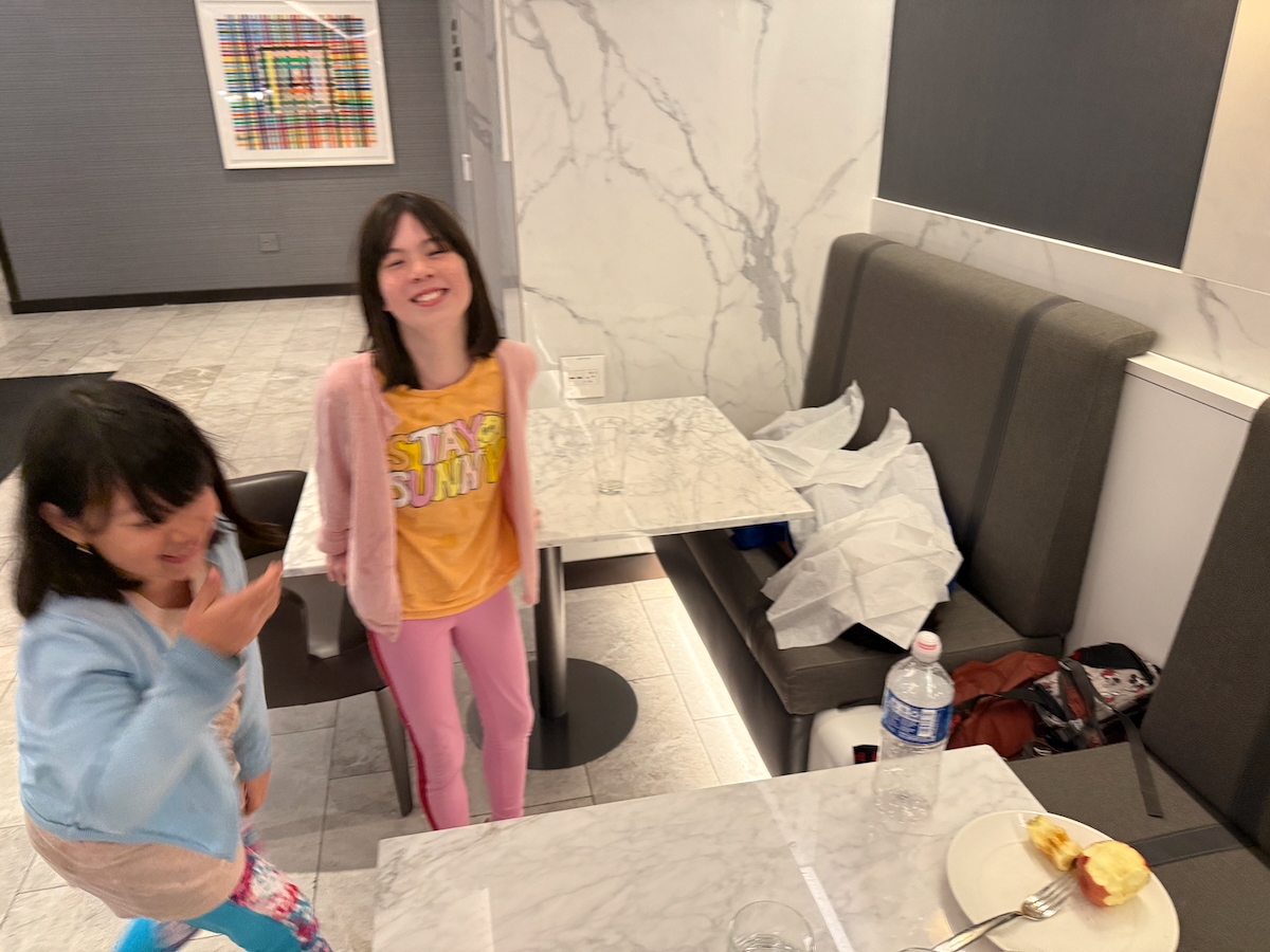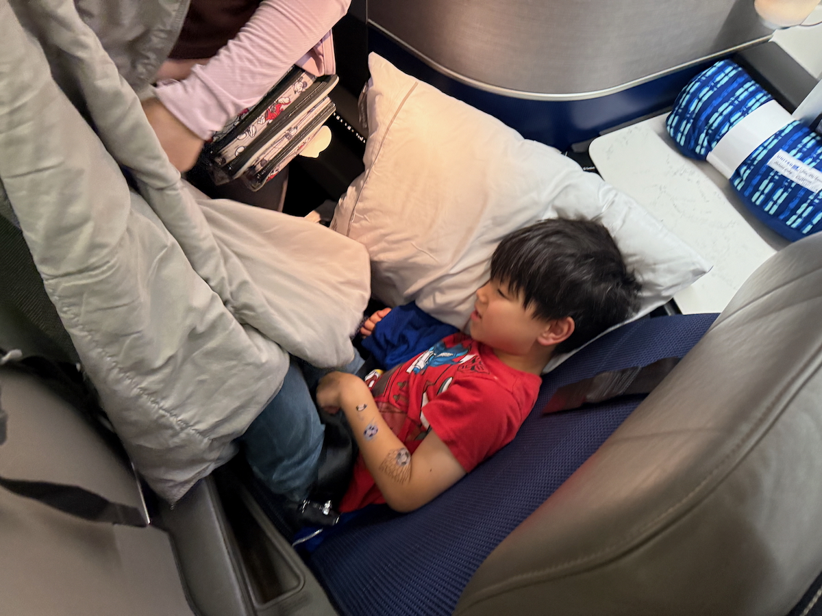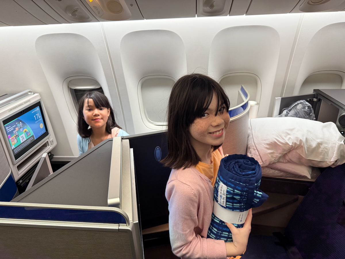 Girls were very excited to get into their business class cubicles with the lie-flat seats. Lucky, spoiled kids. They thanked me again for the business class seats. I guess that’s something.