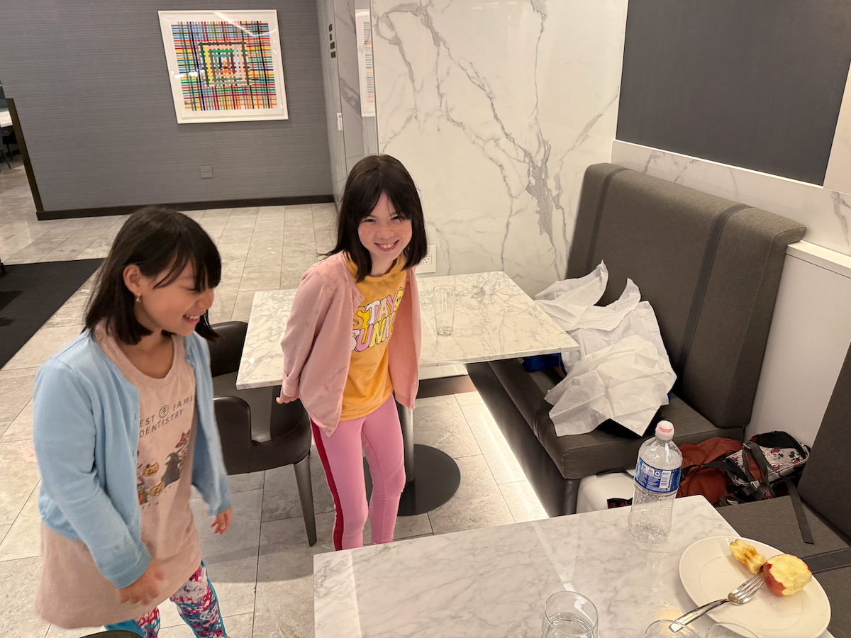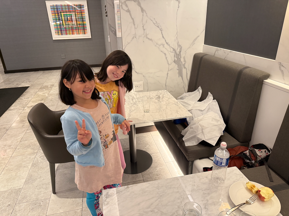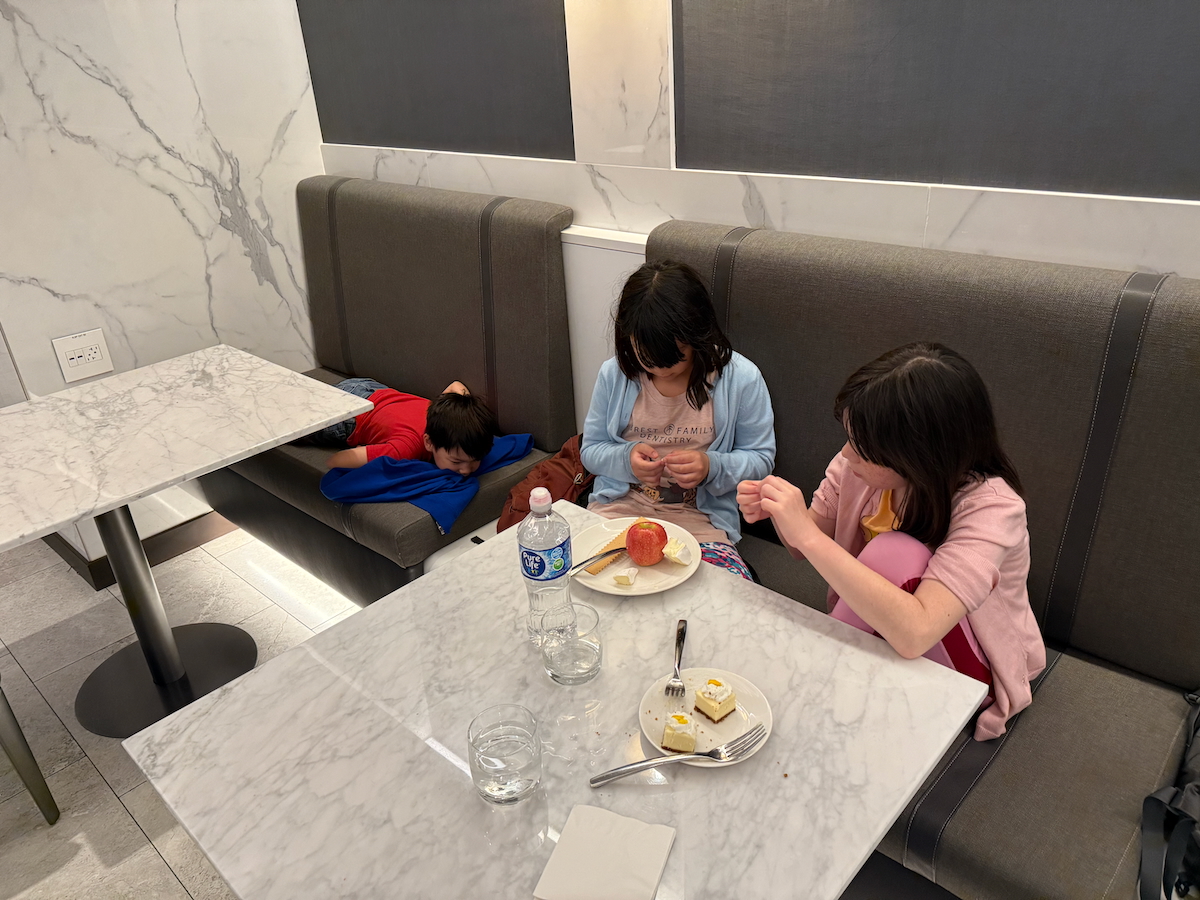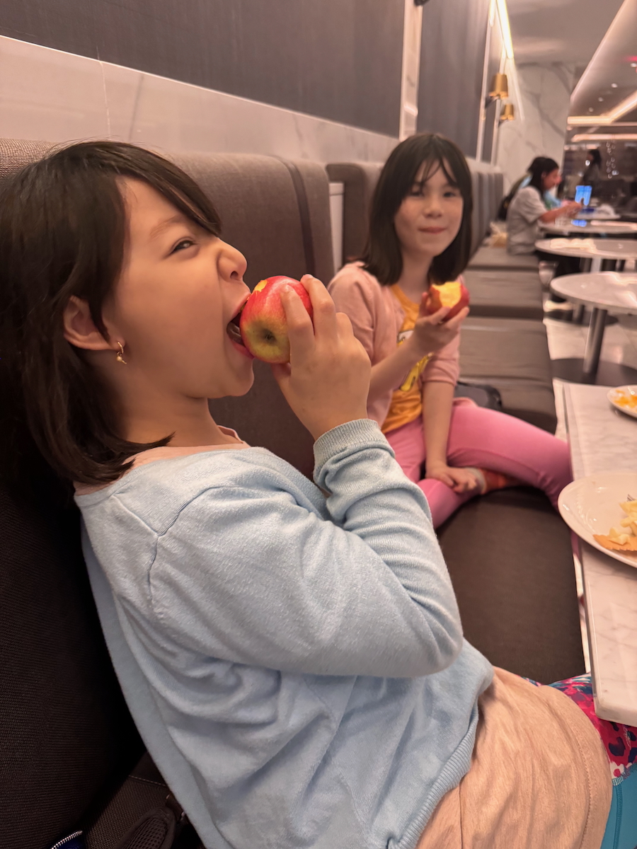 Girls were very excited to get into their business class cubicles with the lie-flat seats. Lucky, spoiled kids. They thanked me again for the business class seats. I guess that’s something.