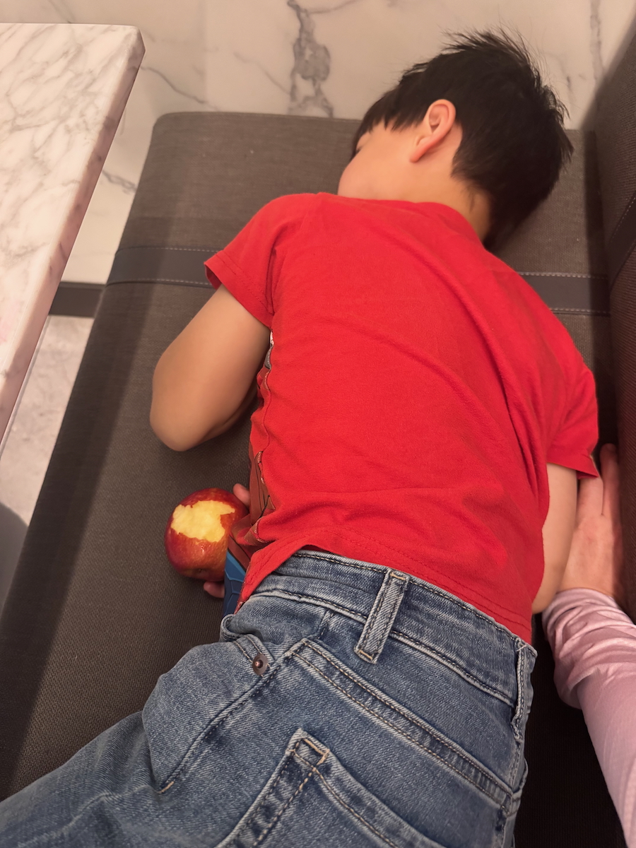 We’ve been staying up later and later the past few days in an effort to get a head start on our jetlag correction. Little KL is feeling a bit of the lack of sleep.